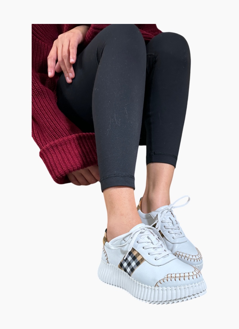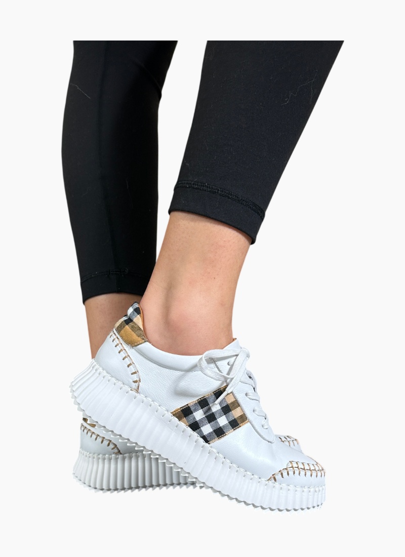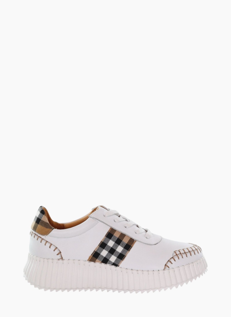 The latest edition of Rizz brings a fresh twist to the collection with a bold tartan side panel and tan stitching that adds depth and detail. This high-fashion sneaker stands out on its own while remaining versatile enough to pair effortlessly with casual or statement outfits. A classic silhouette updated with texture and pattern, Rizz makes every step feel elevated and on-trend. For an extra touch of playful style, swap in our organza laces to really amp up the look.