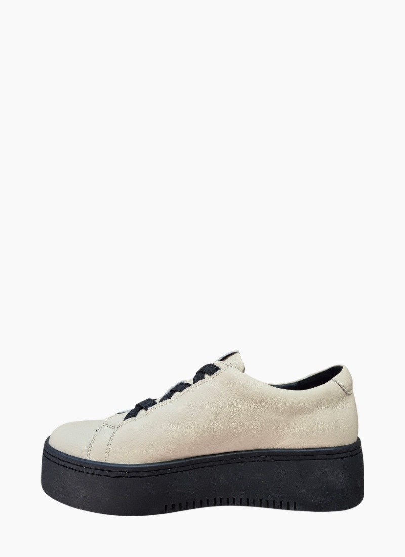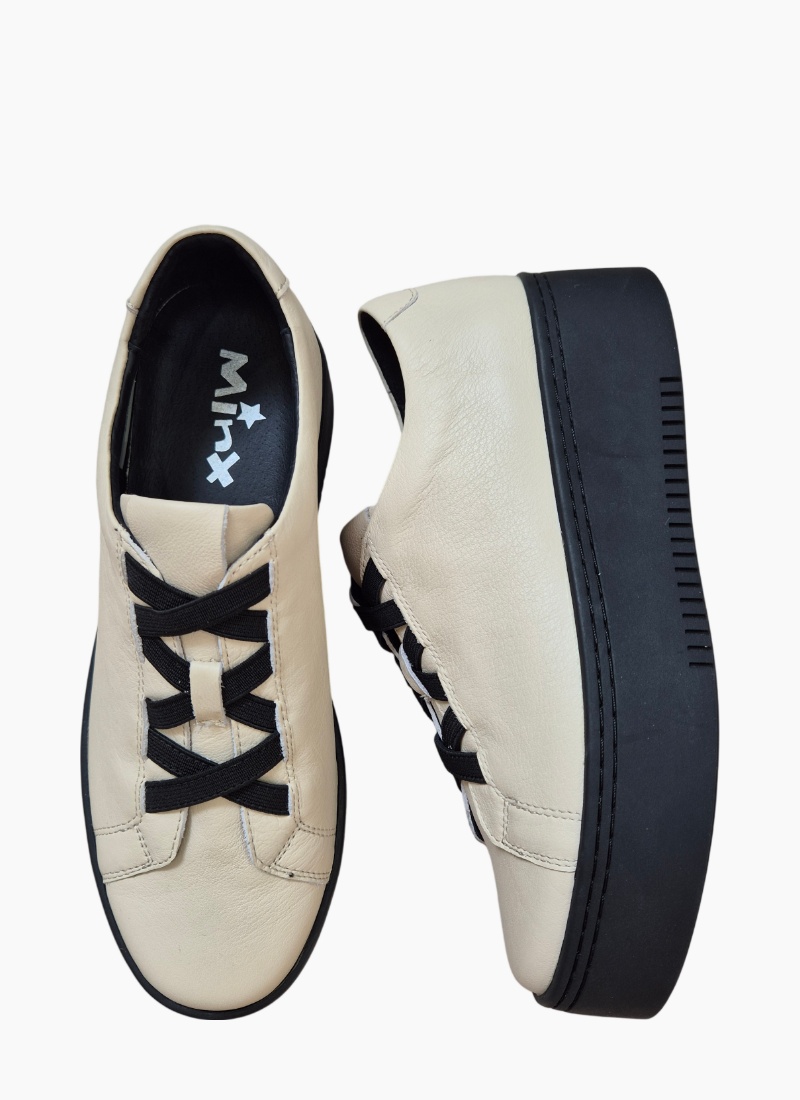 Introducing the Minx Trina Sneaker Almond/Black. A contemporary platform sneaker that balances minimalist design with confident attitude.