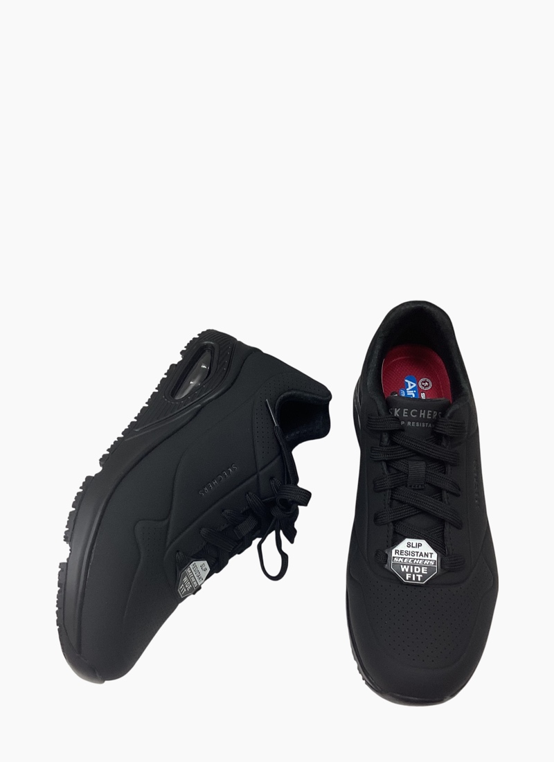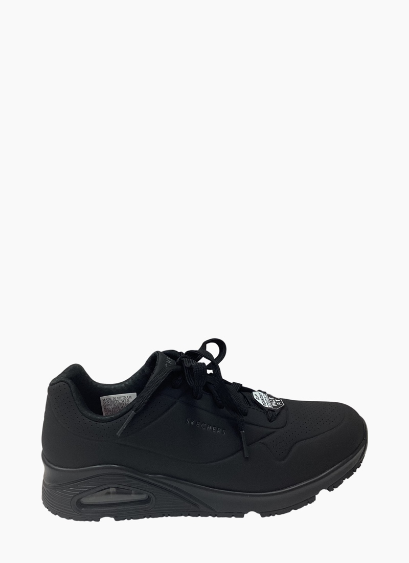 A favourite style arrives in comfort and safety with Skechers Work™ Relaxed Fit®: Uno Slip Resistant. This slip-resistant utility design features a durable perforated synthetic durabuck upper with a Skechers Air-Cooled Memory Foam® insole and Skech-Air® visible airbag midsole.