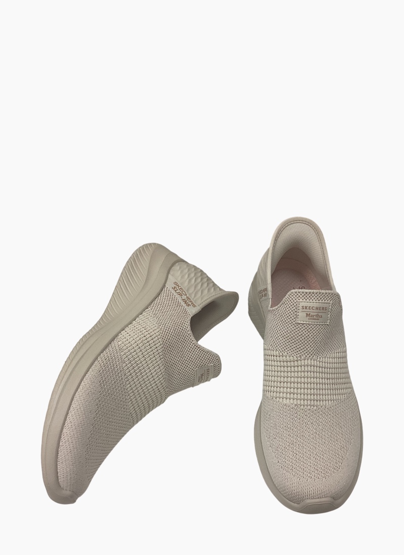 Celebrated lifestyle expert, Martha Stewart, delivers her one-of-a-kind touch to Skechers in this spirited collaboration. Put a little sparkle in your step wearing Martha Stewart x Skechers Hands Free Slip-ins®: Ultra Flex 3.0 - Neptune. Designed with our exclusive Heel Pillow™, this casual vegan style features a Skechers Hands Free Slip-ins® molded heel panel, a metallic Stretch Fit® upper, and a Skechers Air-Cooled Memory Foam® cushioned comfort insole.