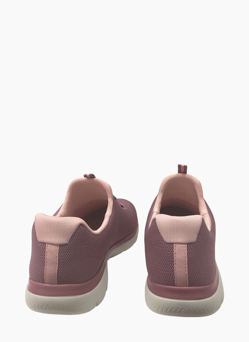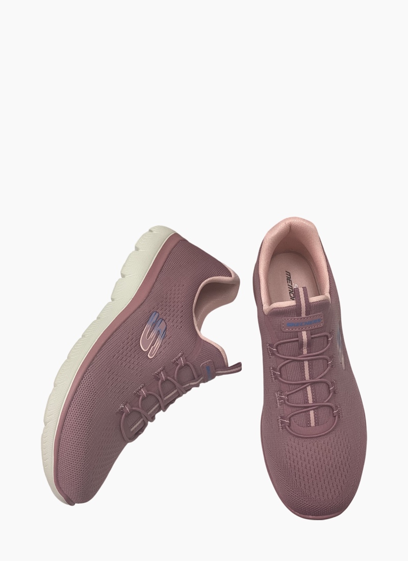 Reach the height of comfort and athletic style with Skechers Summits - Radiant Flow. This easy-on vegan design features an engineered knit upper with a stretch-lace front and a Skechers Memory Foam™ cushioned comfort insole.
