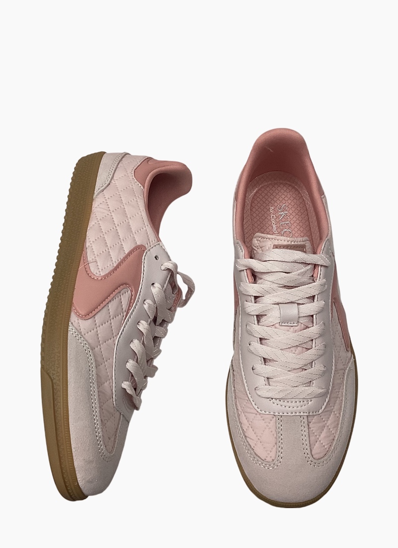 A modern classic meets fresh comfort in Skechers Hotshot Cool Transition. This lace-up court-style sneaker features a woven quilted upper with suede overlays, synthetic contrast 'S' quarter logo, and a cushioned Skechers Air-Cooled Memory Foam® insole.