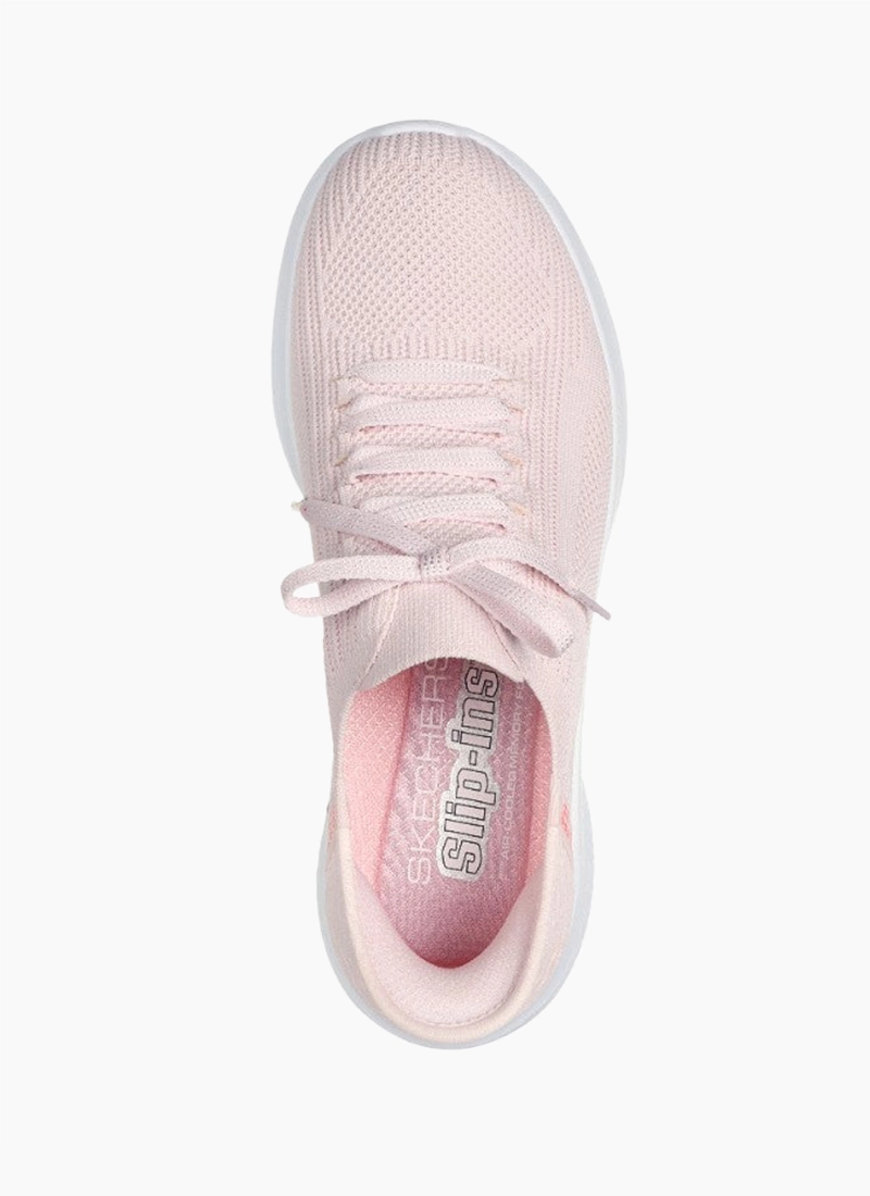 TOUCHLESS FIT™ Step into effortless comfort with Skechers Hands Free Slip-ins®: Ultra Flex 3.0 - Brilliant Path. Designed with our exclusive Heel Pillow™. This style features a Stretch Fit® engineered knit upper with deco laces, plus a cushioned Skechers Air-Cooled Memory Foam® insole.