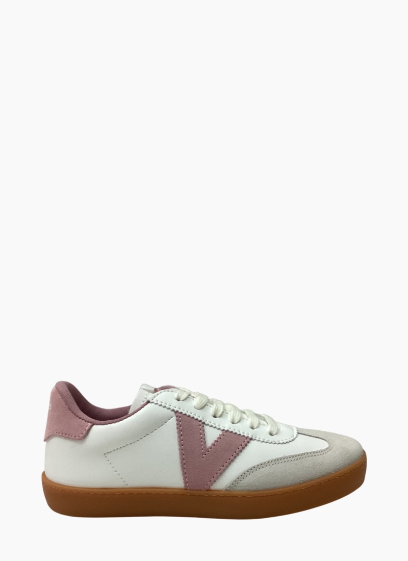 Take your style up a notch with the Victoria 1 126206 sneakers. Designed to stand out, these sneakers feature premium suede detailing and the brand’s signature bold V logo for a sleek, modern finish. The crisp white upper is beautifully complemented by soft rose pink accents, adding a subtle pop of colour to any outfit.Lace them up for a secure fit and enjoy all-day comfort, while the durable gum sole provides excellent grip and traction. Effortlessly versatile and easy to style, these sneakers are a must-have addition to your footwear collection.