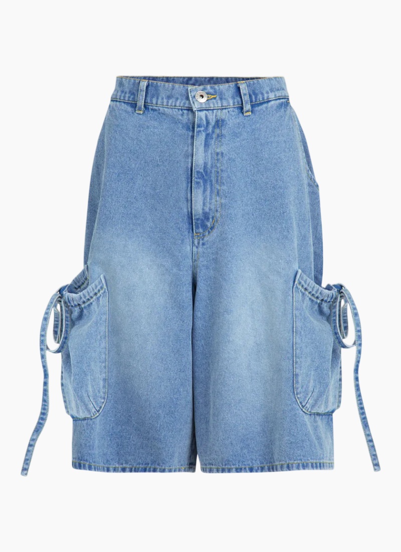 Introducing the Bow to Go Short from COOP. These light-blue denim casual shorts bring playful utility and relaxed summer style to your wardrobe.