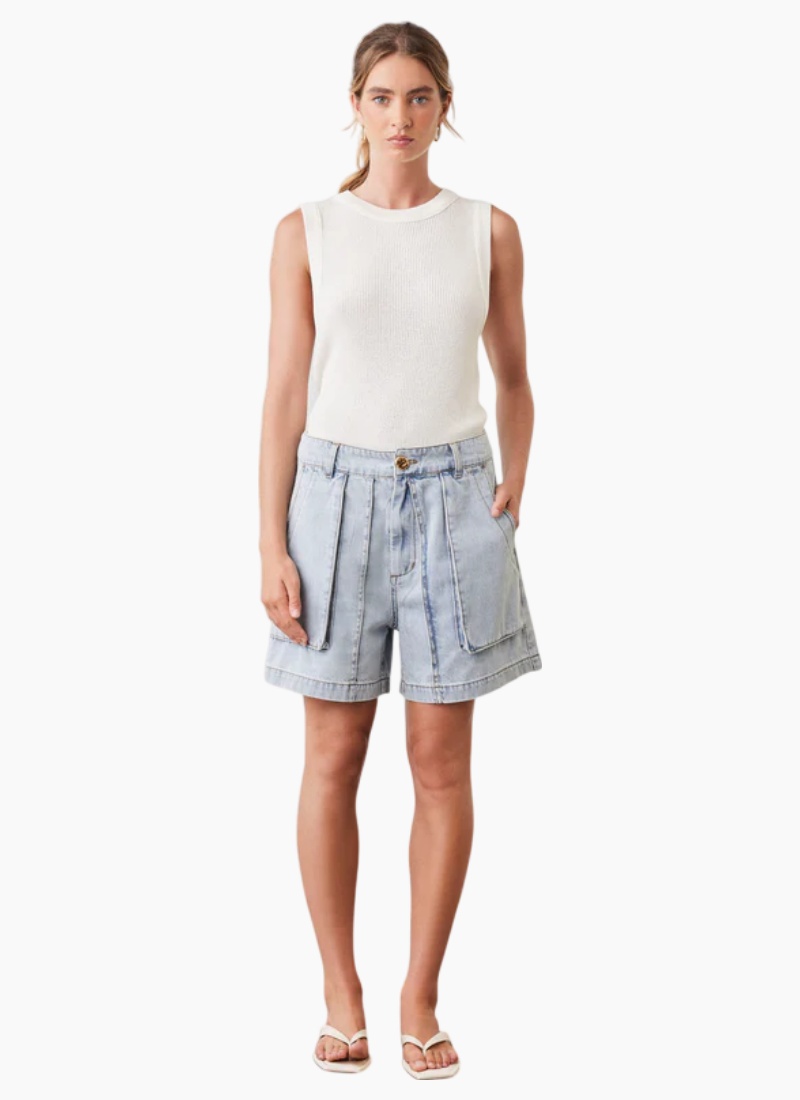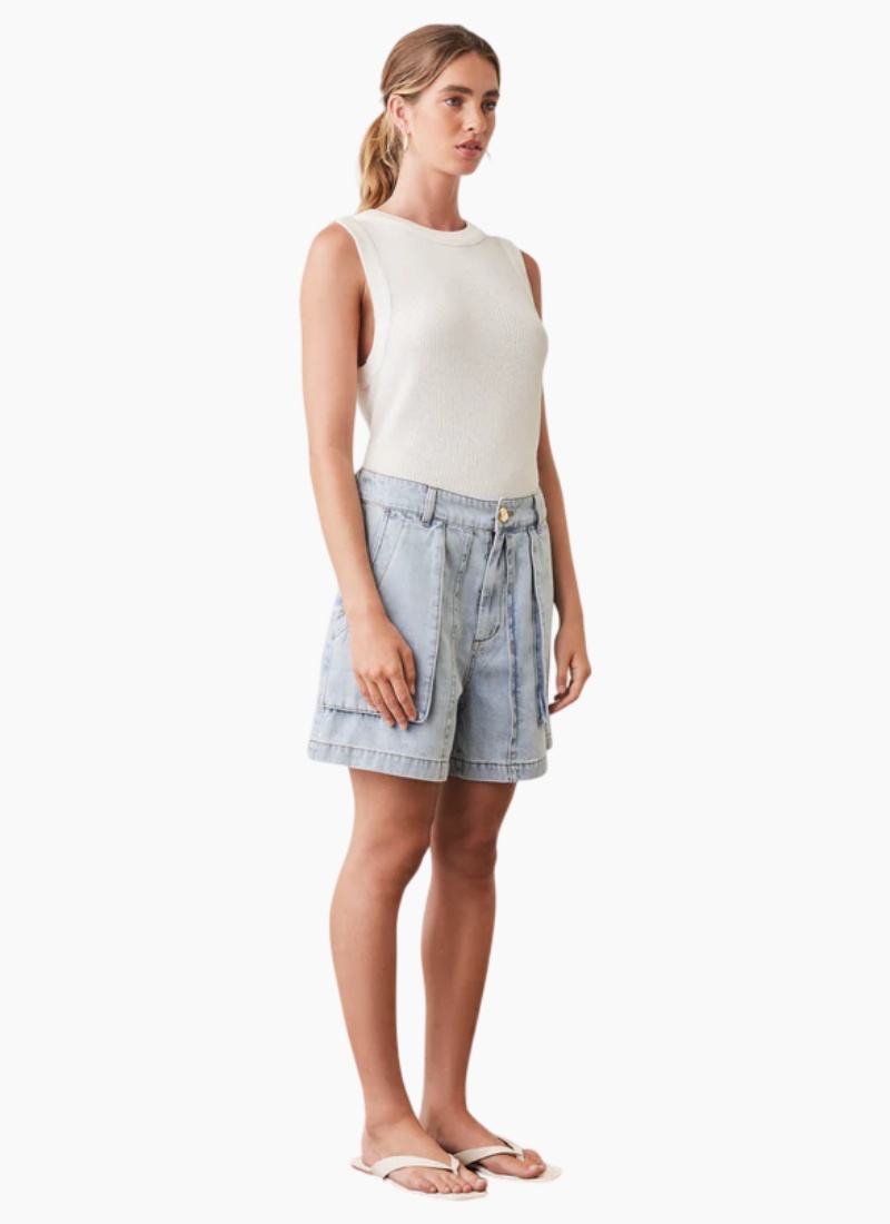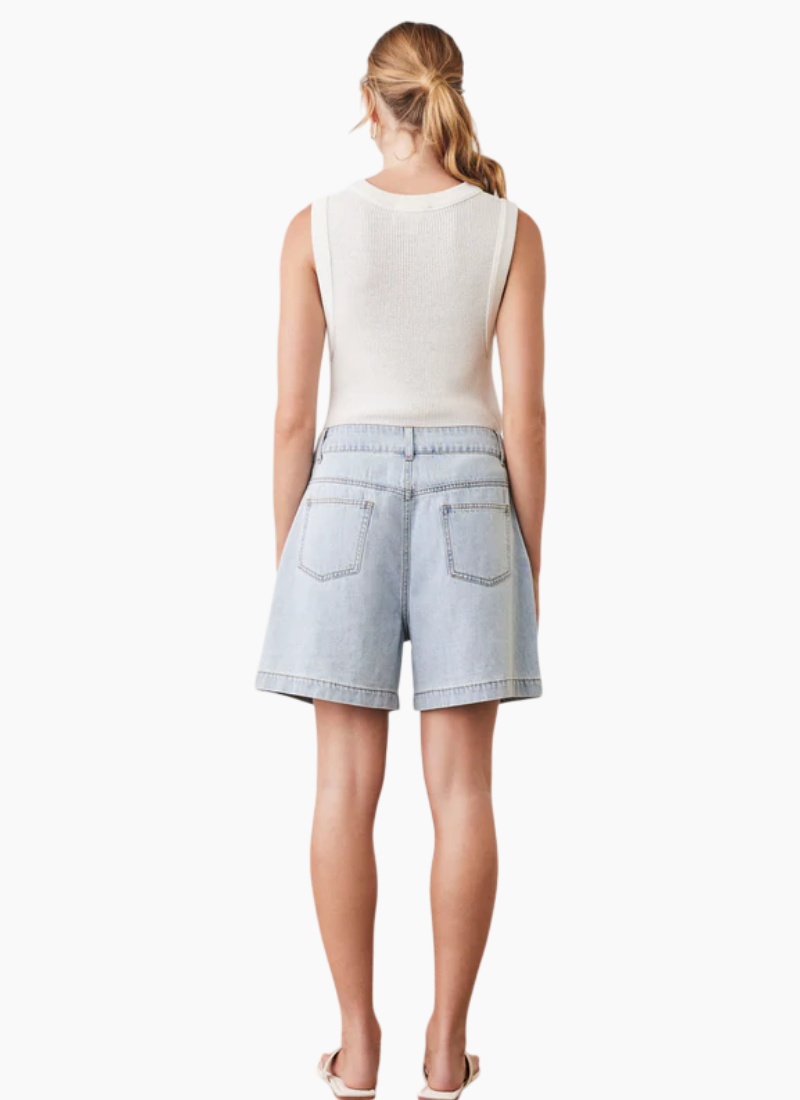 Introducing the Riptide Denim Short from Esmaee. These light blue denim shorts bring relaxed coastal style with everyday versatility.