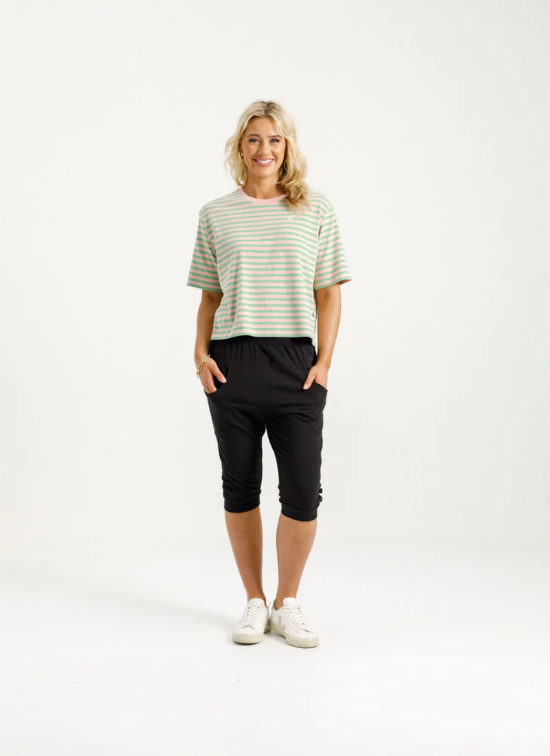 World-famous in New Zealand for good reason - the 3/4 length Apartment Pants are the shorter version of our full length Apartment Pants. Whether you’re lounging at home, running errands, or rushing out the door, these pants are the ultimate in comfort and style.With a fitted cuff at the bottom of the leg, a comfortable elasticated waistband, and deep pockets, they’re as practical as they are stylish. Designed to sit loosely on your hips and backside, with a relaxed dropped-crotch fit, these pants redefine effortless everyday wear.