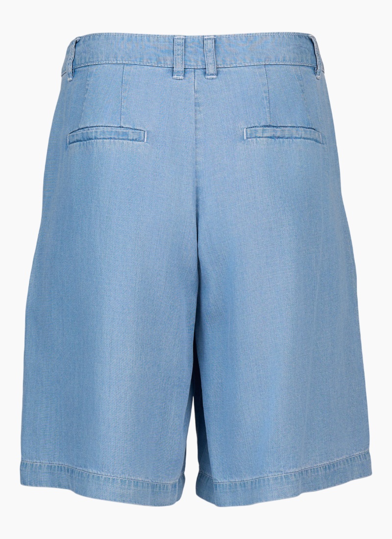 The Naomi Short is an easy warm-weather essential with a soft, drapey feel and denim-inspired look. Designed in a relaxed wide leg fit with crisp white contrast stitching and slash pockets, it's a comfortable option for everyday styling• Made from a lightweight tencel fabric with a denim look • Waistband features metal 'KNEWE' logo jean button closure, 2 front beltloops and 4 back beltloops • Small pleat details on front • White contrast stitching • Side slash pockets • Faux back pockets • Loose wide leg fit • Model is 175cm tall, and wears size 10