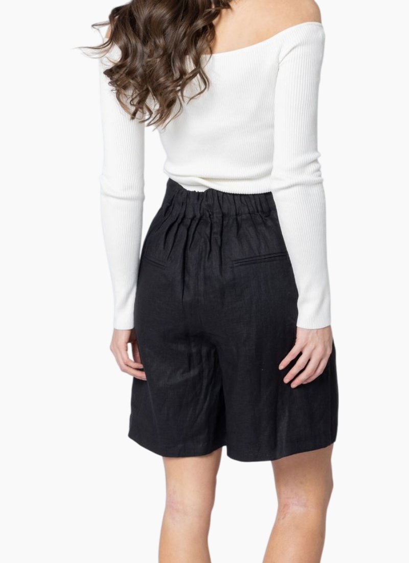 - Relaxed Bermuda length in classic black, perfect for casual days or dressed-up weekends