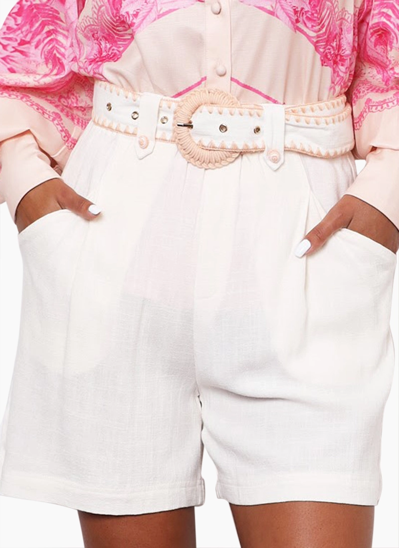 Upgrade your style for the warm weather with these crisp shorts crafted from breathable linen and topped with a matching belt.