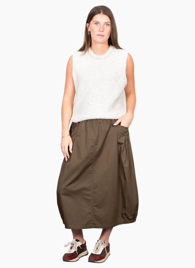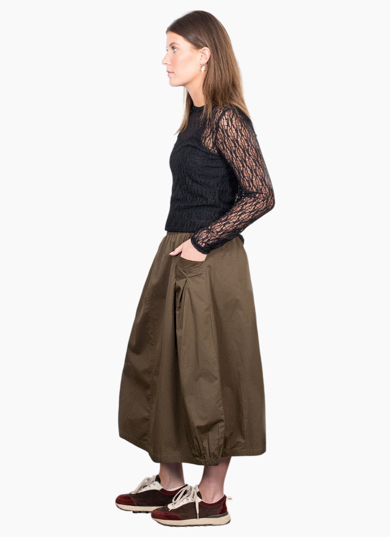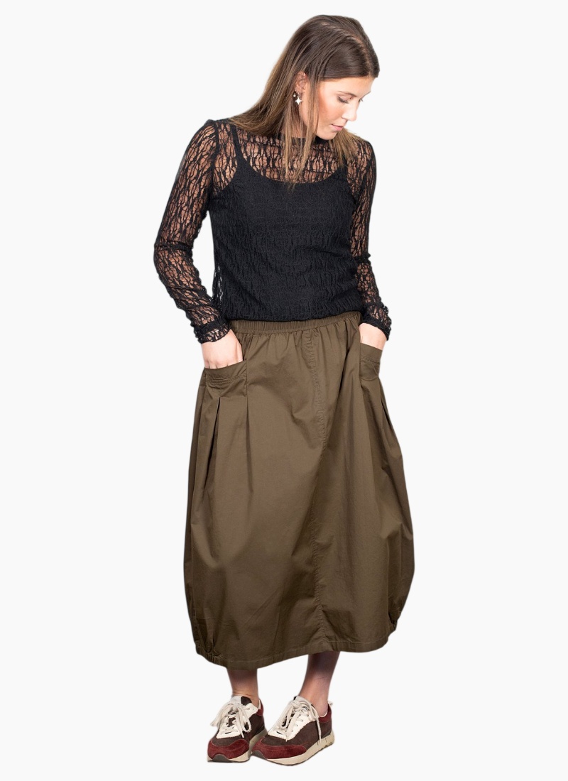 - The Cyrus Skirt in Navy is your new go-to for casual wear. Crafted from lightweight, breathable cotton, this skirt features a relaxed A-line silhouette with a subtle balloon hem for added volume and movement.