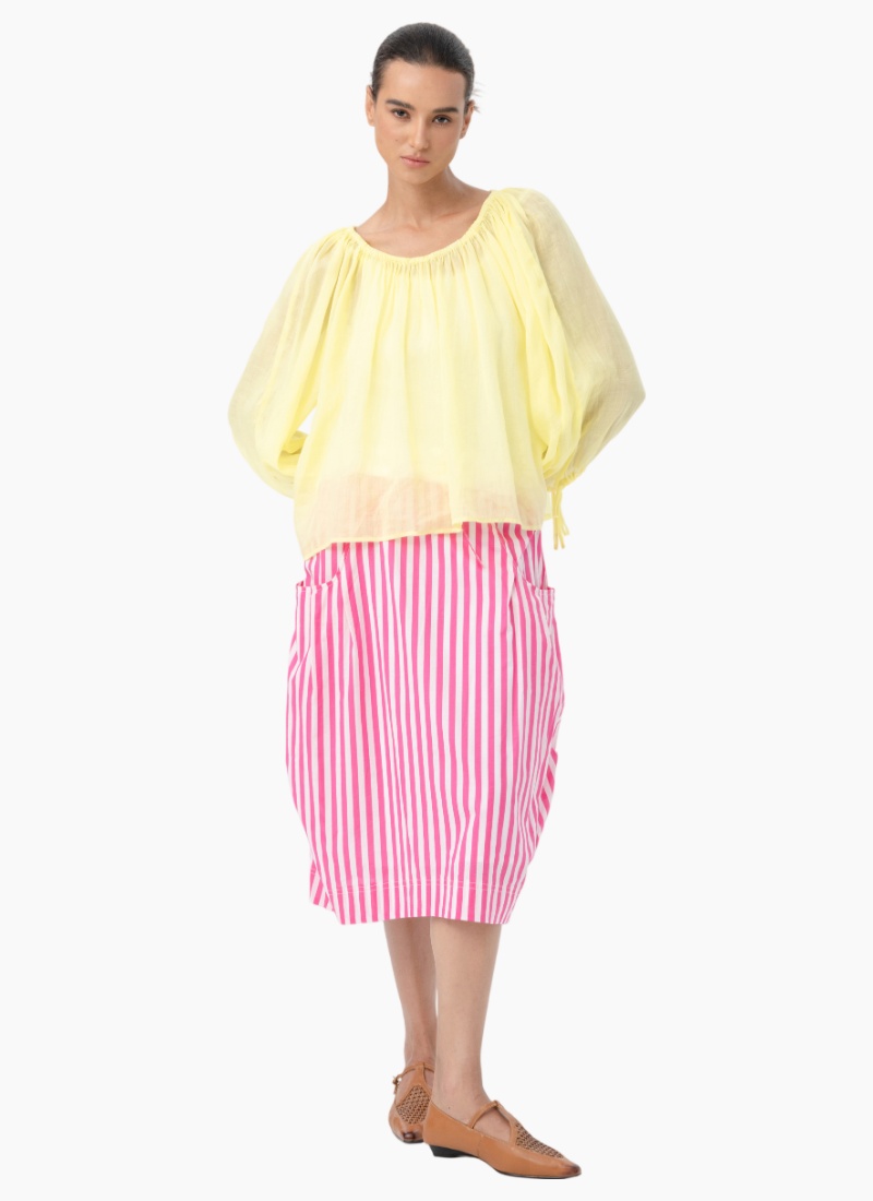 - Pink Stripe from Blacklist. A breezy knee-length skirt that brings playful pink stripes to your wardrobe.