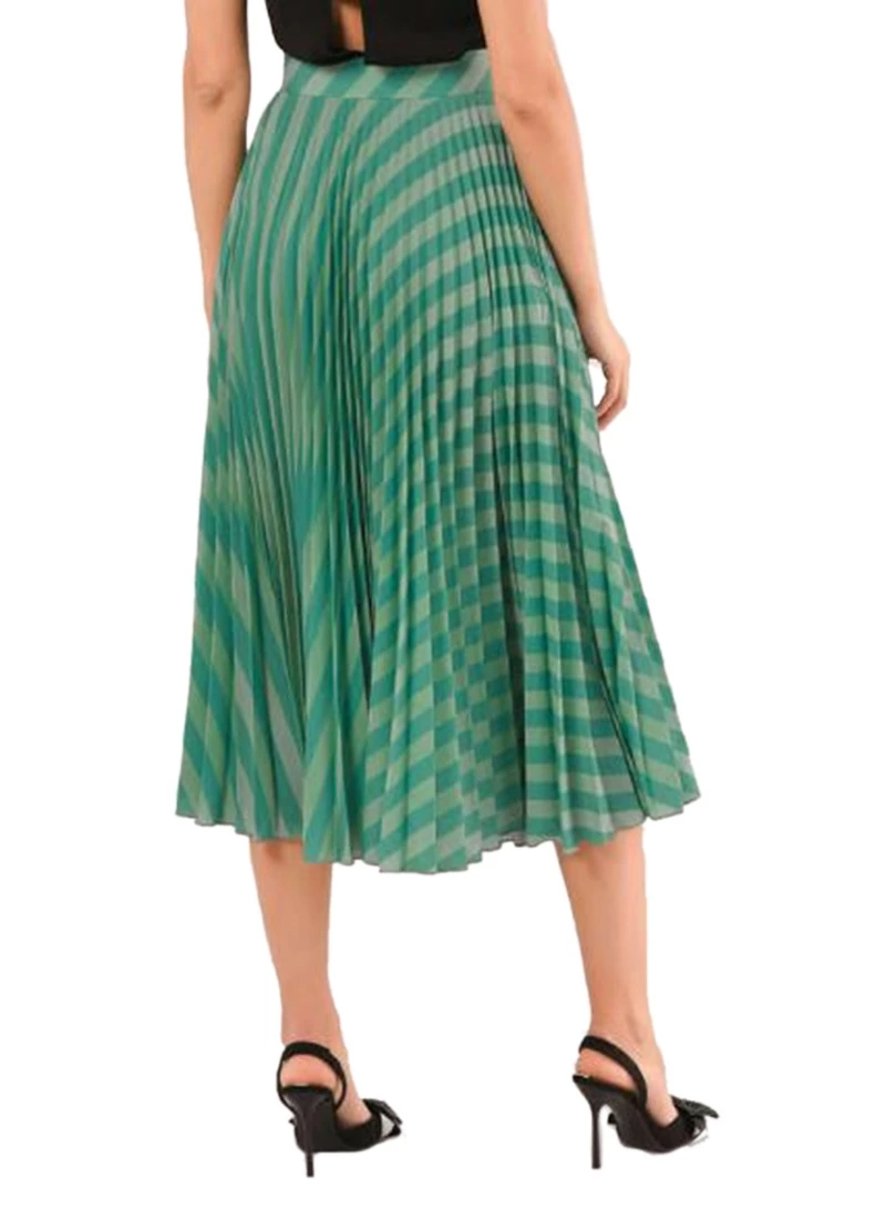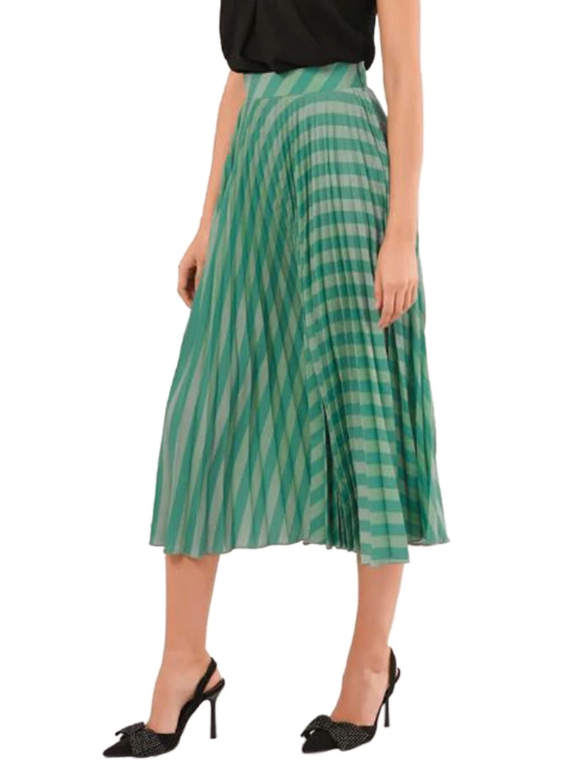 The candy striped fabric is two tones of blue, this midi skirt sits neatly on your waist, before flaring out into sunray pleats with the hem reaching just below your knee. It will make a perfect addition to your spring wardrobe when worn with a blazer or biker jacket and a white t-shirt.