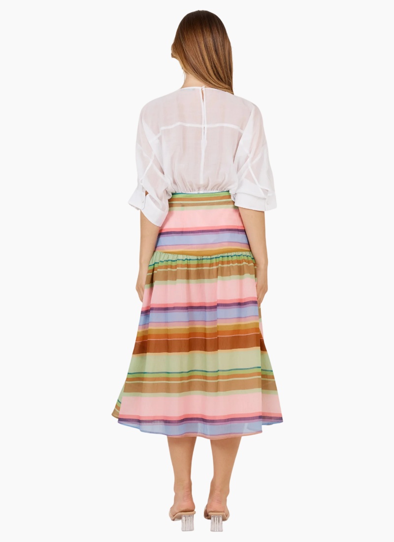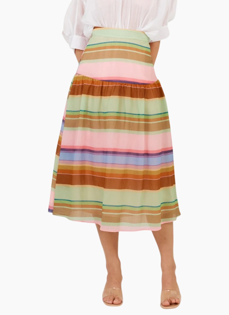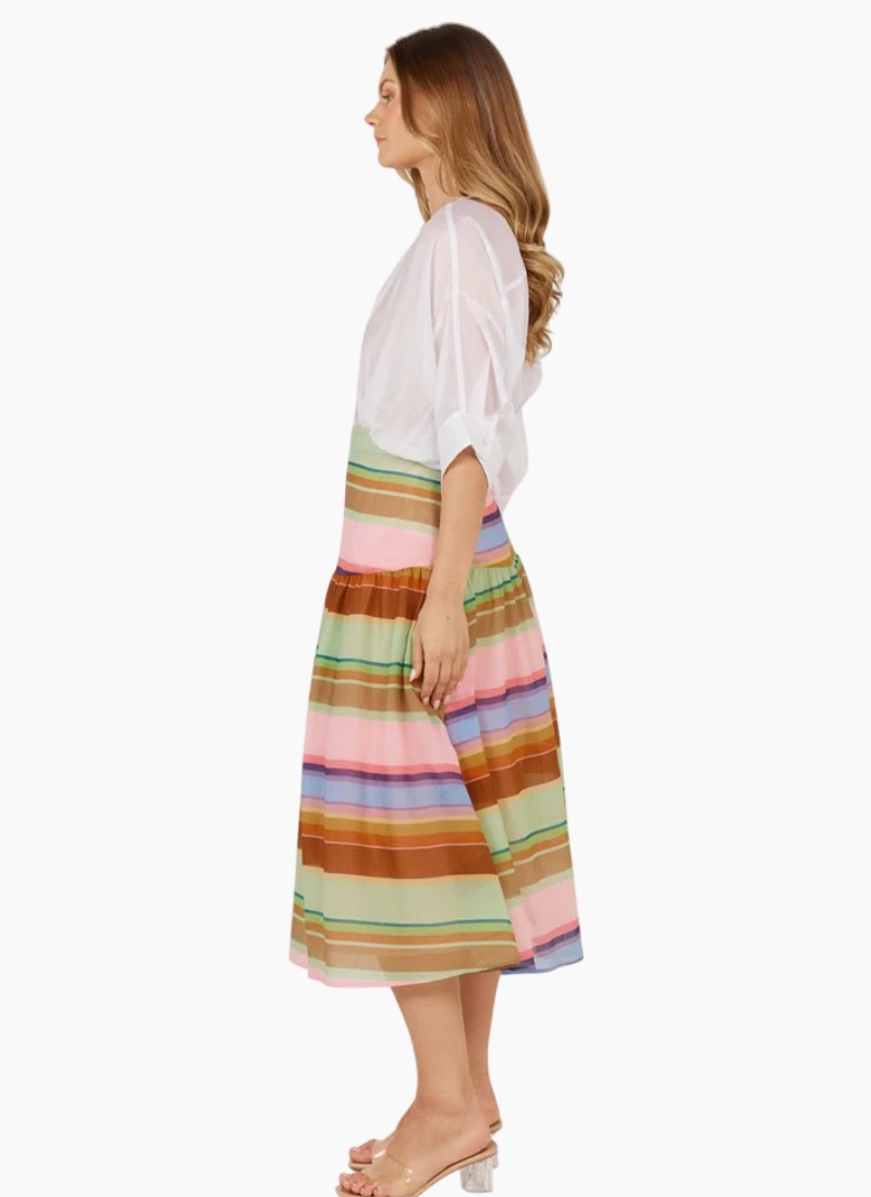 The Siesta Skirt offers refined femininity with a side zip, yoke detail, and gentle gathers. Fully lined for comfort, it’s crafted in a regular fit that flatters the figure. A polished piece that pairs beautifully with both blouses and knits. Ideal for sophisticated, on-trend dressing.-Zip opening in side seam -Yoke detail on front and back -Soft gather on yoke seam -Lined