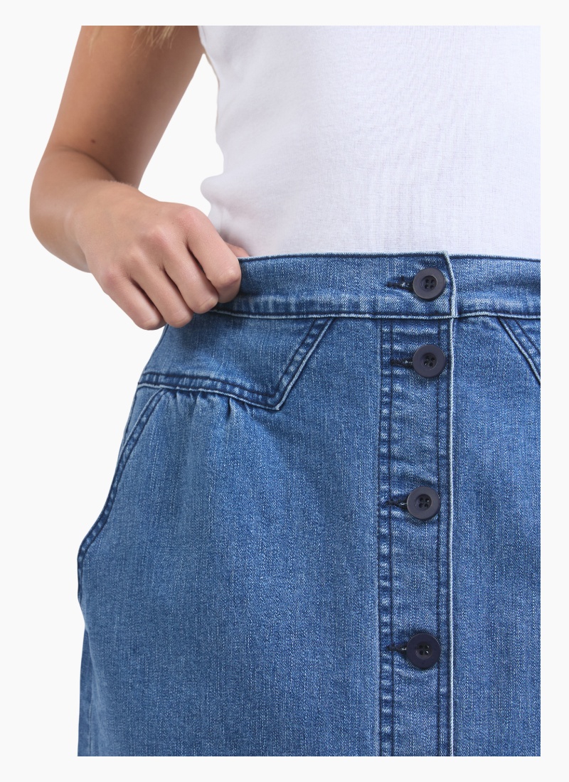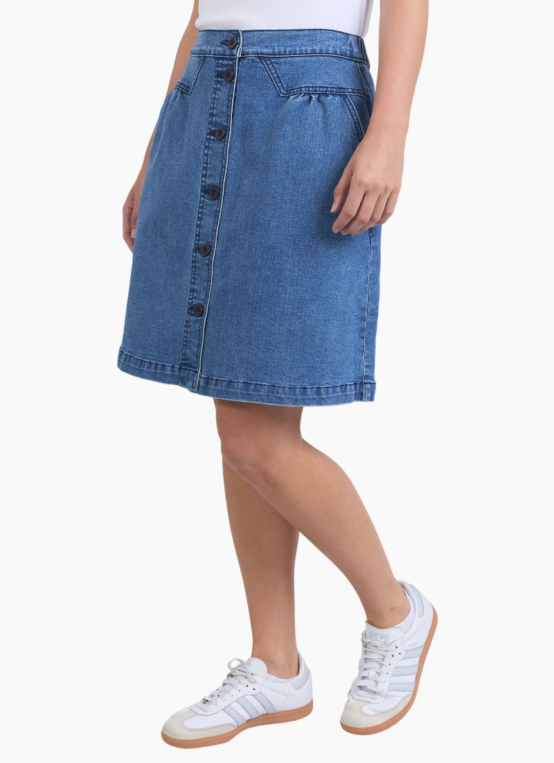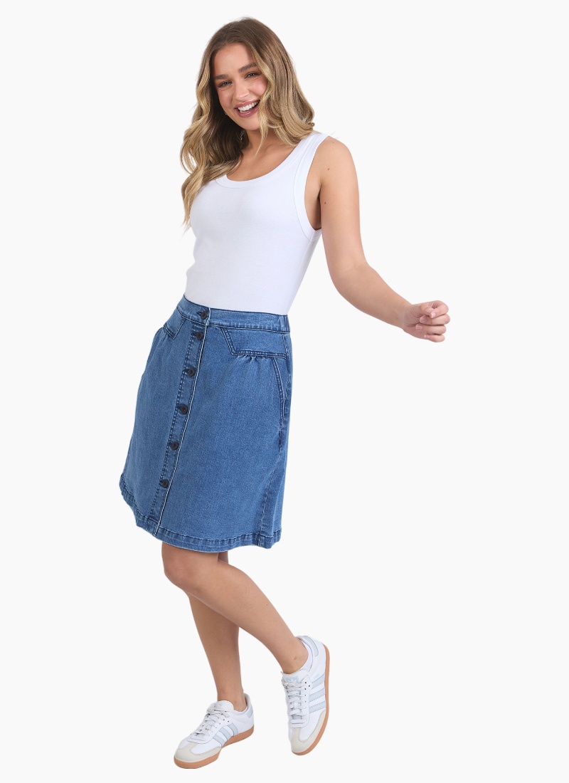 Introducing the Amanda Skirt from Foxwood. A timeless denim piece designed for everyday polish and easy styling.