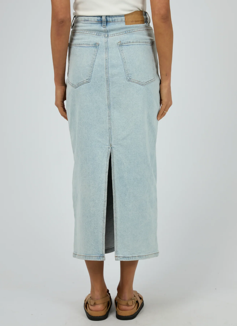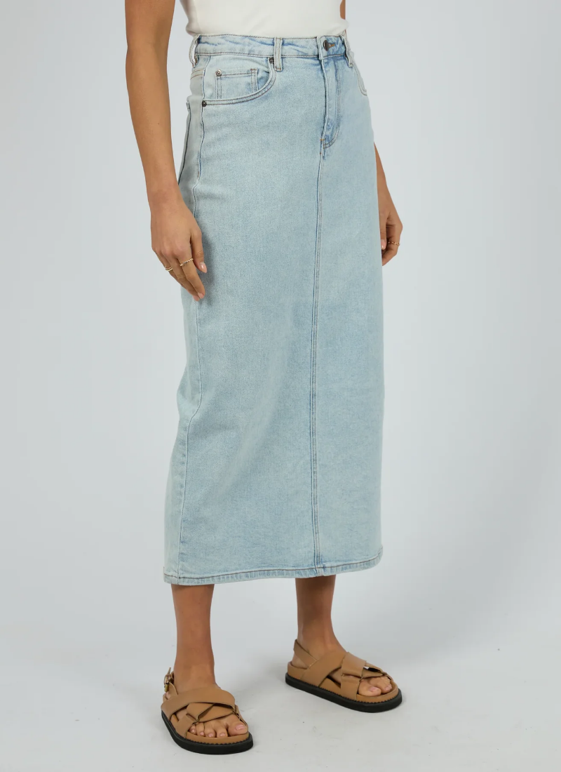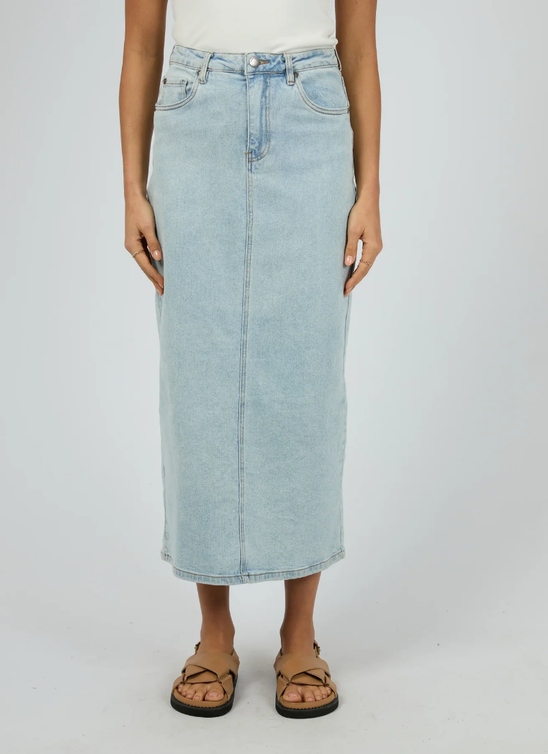 The Ray Denim Maxi Skirt is this season's fashion skirt. Featuring a maxi length and comfort denim. This split back skirt is a must have style this season. Pair back with a tee and sneakers or dress up to take you into the night.Comfort stretch denim Split back hemline Model is wearing a size 8