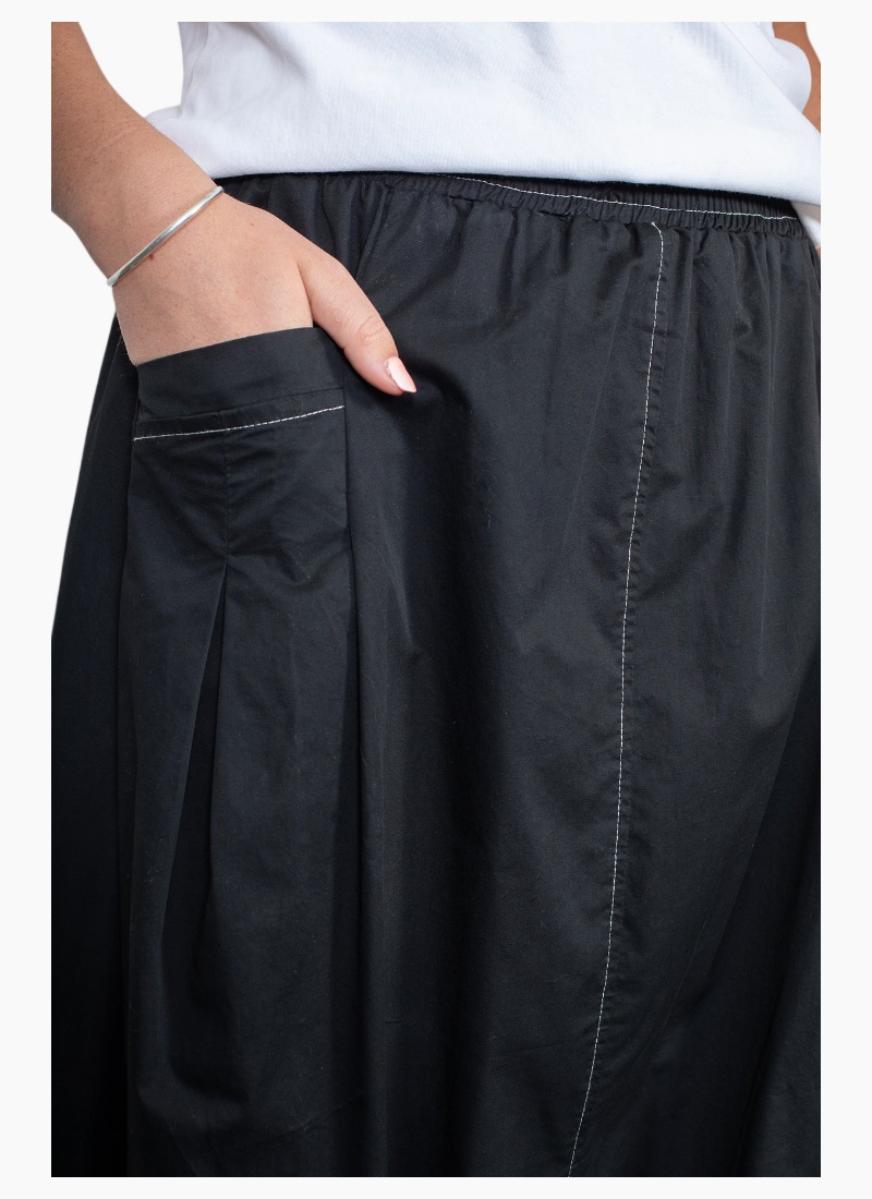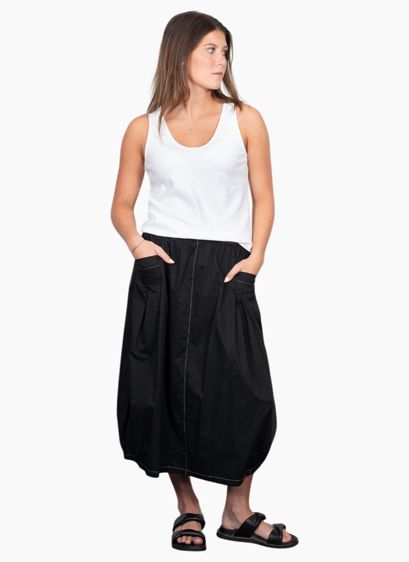 - The Cyrus Skirt in Navy is your new go-to for casual wear. Crafted from lightweight, breathable cotton, this skirt features a relaxed A-line silhouette with a subtle balloon hem for added volume and movement.