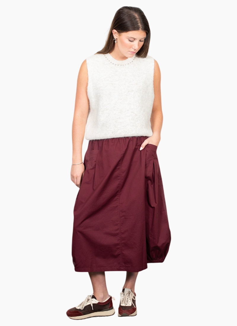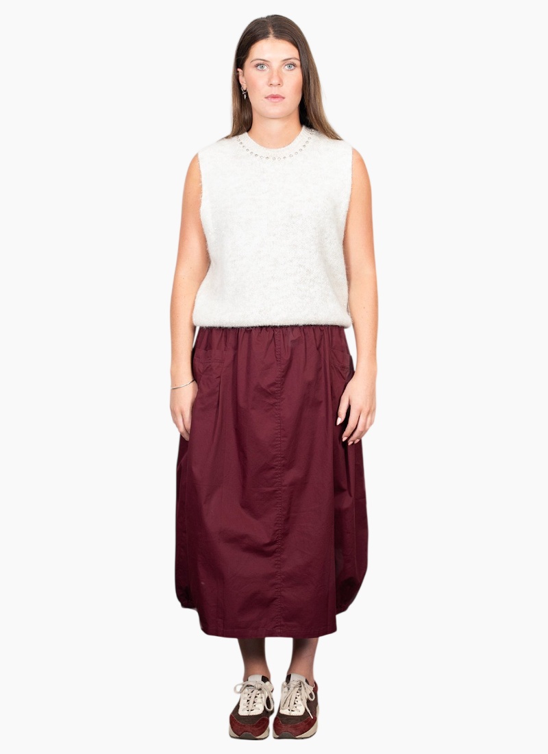 - The Cyrus Skirt in Navy is your new go-to for casual wear. Crafted from lightweight, breathable cotton, this skirt features a relaxed A-line silhouette with a subtle balloon hem for added volume and movement.