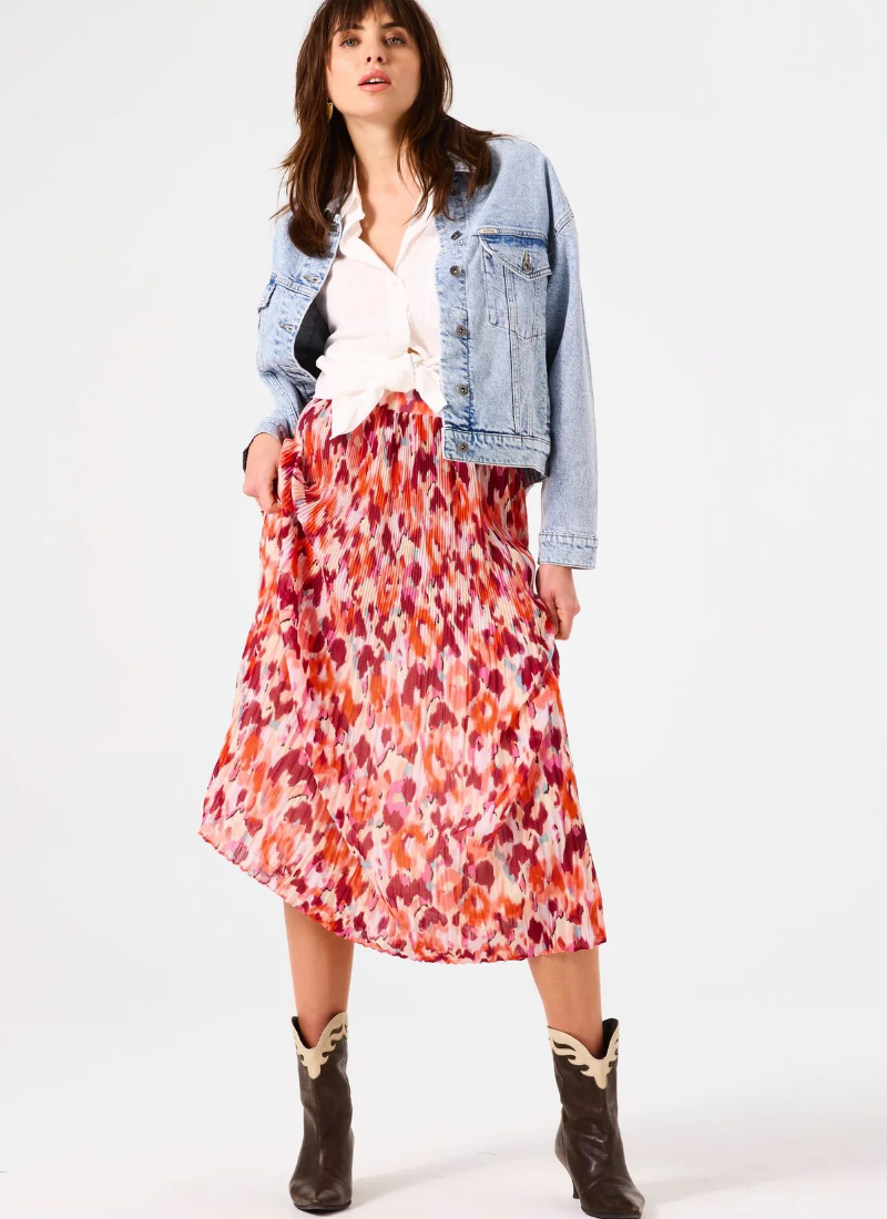 Add a pop of fun to your summer wardrobe with the Garcia Shelby Skirt in Tangerine Red. This colourful pleated midi skirt is crafted from lightweight fabric, making it effortlessly comfortable and perfect for warm days. Its easy-to-wear design lets you move with ease while staying stylish and breezy. Whether paired with a simple tee or a chic blouse, this skirt brings a playful splash of summer wherever you go.
