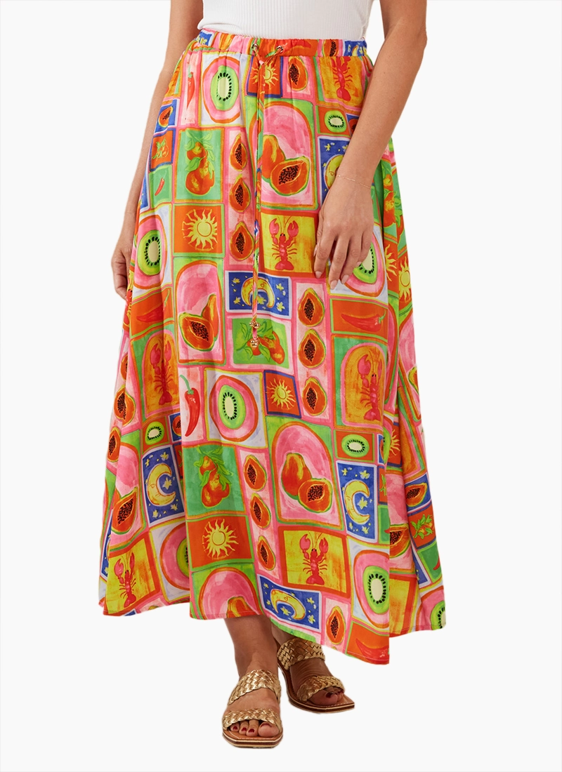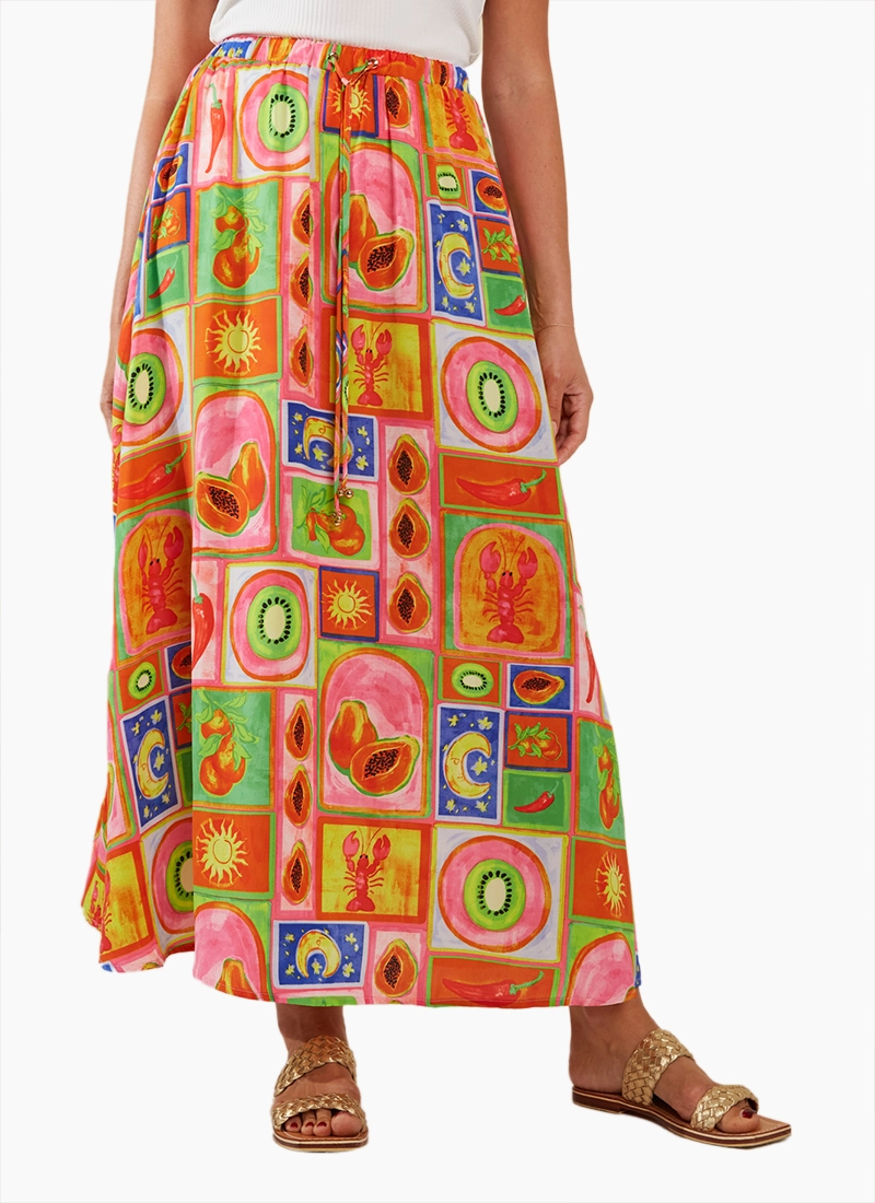 Highlight your feminine flair with the gorgeous Portofino Maxi Skirt. Its sumptuous sheen and silky texture bring a touch of luxury to your wardrobe. The elastic waist with a drawstring ensures a comfortable fit, cascading gracefully to ankle length. Style it with a tank or blouse, and you'll be all set for any occasion!