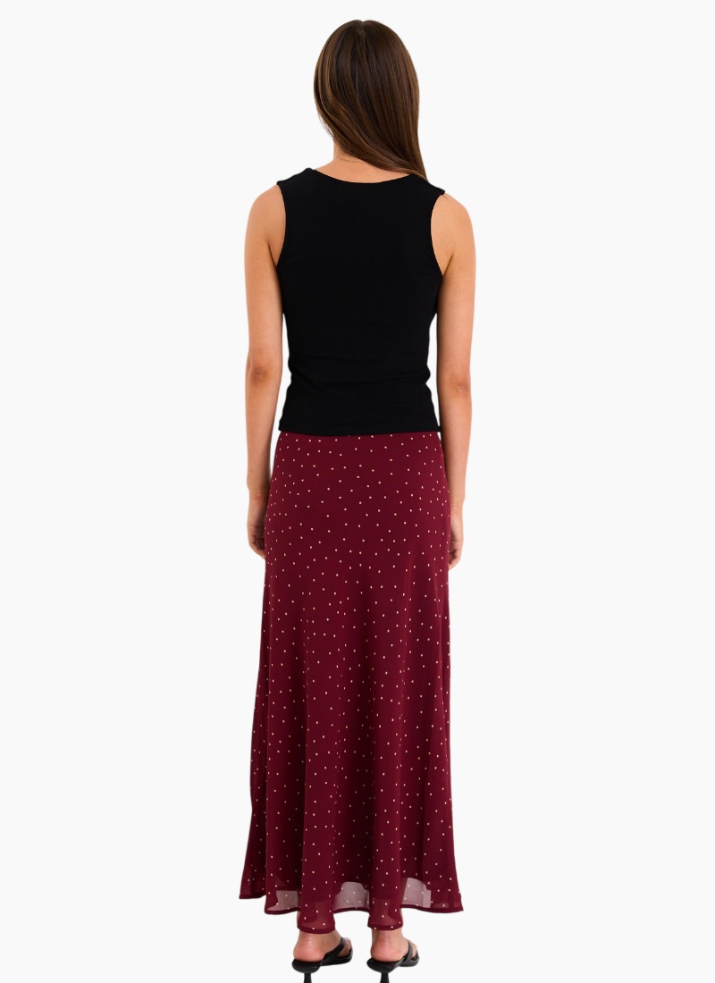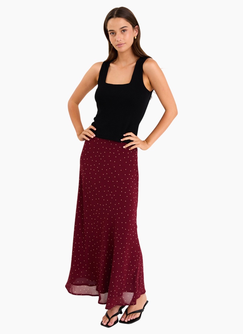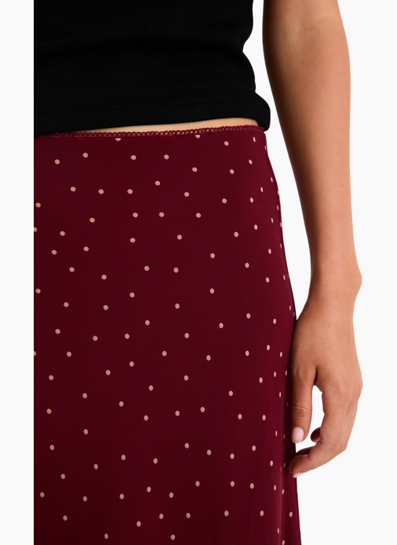 A soft satin moment that floats with every step, the Emporium Skirt brings together a timeless polka dot print with a beautifully cut bias silhouette. Easy to style up or down, it's an instant wardrobe favourite.