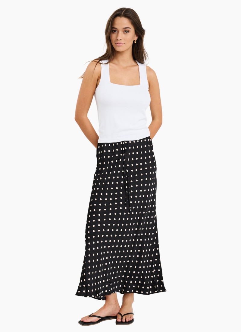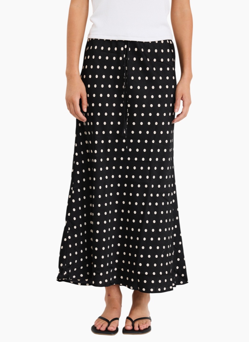 The Rarity black cream polka dot skirt is here to bring a playful yet polished vibe to your wardrobe. With its swishy satin finish and flattering bias cut, this skirt moves beautifully with every step while keeping comfort top of mind. Dress it up or down, it’s your new go-to for effortless charm.