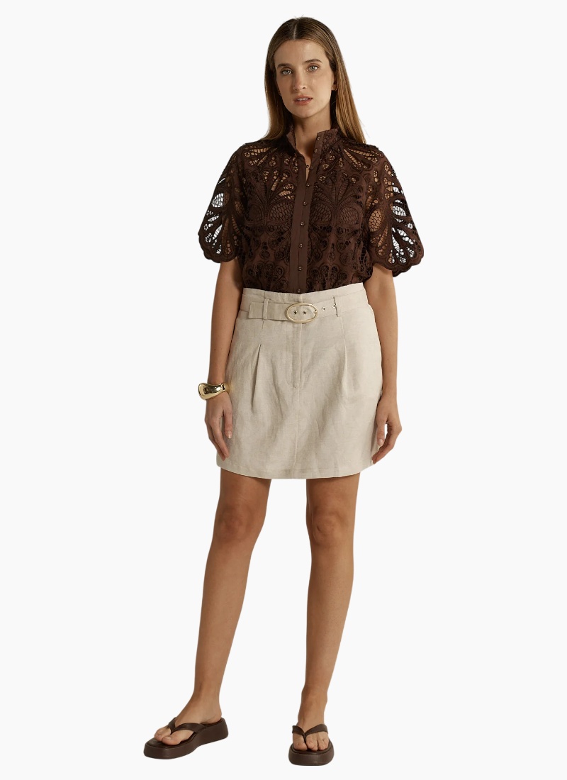 The Amara Belted Skirt combines clean lines with modern femininity. Designed with soft pleats, side pockets and a concealed fly, it’s cinched with a matching belt for definition. A transeasonal staple that balances elegance and ease.-Matching belt included -Pleat detail -Side pockets -Concealed fly front opening