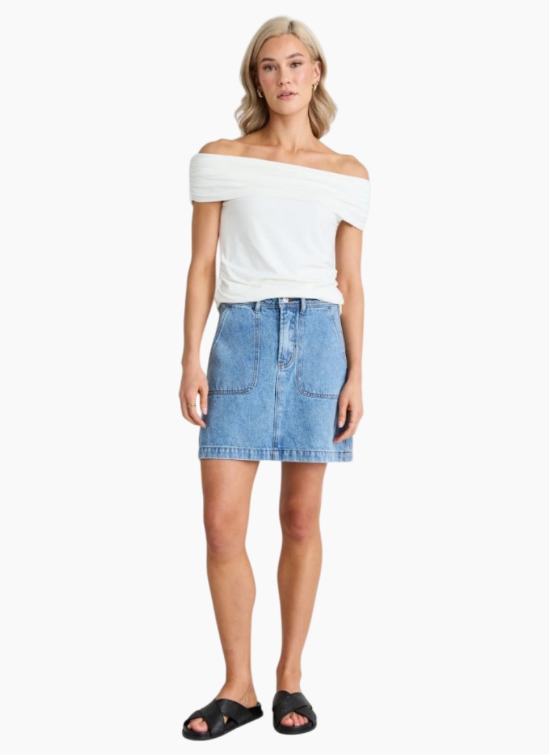 The Orchard Mid Blue Mini Skirt from Ivy + Jack is your go-to for chic off-duty style with an effortlessly cool edge. Designed in soft 100% cotton denim with a flattering A-line shape, it gives vintage-inspired vibes with just the right amount of structure. Whether you're dressing it up or keeping it casual, this piece nails that high-low mix.