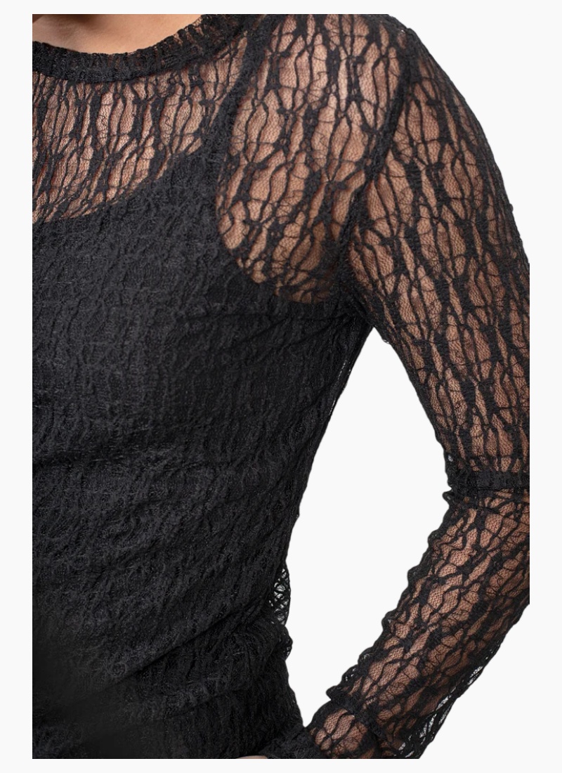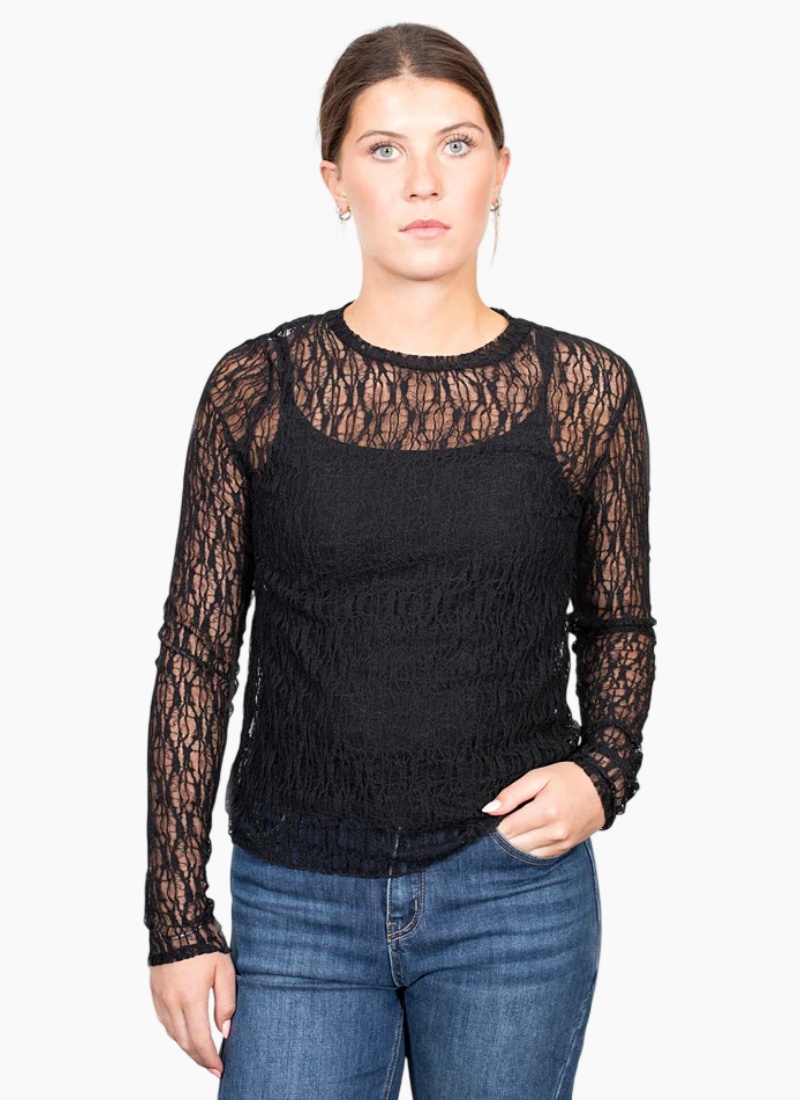 Introducing the Splice Layering Top from Antler. This elegant long-sleeve lace top brings textured sophistication to your wardrobe.