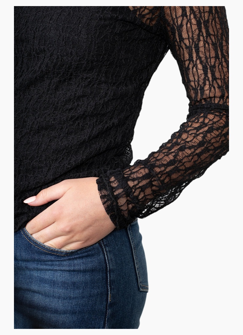- Sheer sleeves and openwork texture create a refined, fashion-forward silhouette ideal for contemporary Tops styling