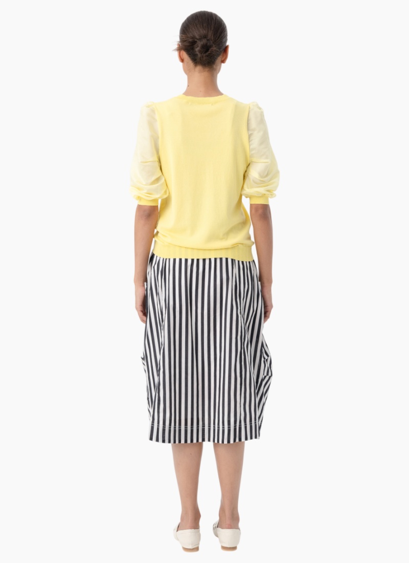- Sunshine from Blacklist. This sunny, feminine piece blends a soft knit body with delicate sheer sleeves for a modern, boutique-ready look.