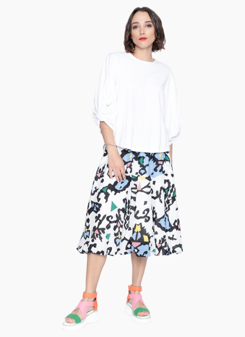 Introducing the 5850 Clio Top from Blacklist. This crisp white piece is a modern wardrobe staple with a relaxed silhouette and sculptural sleeves.