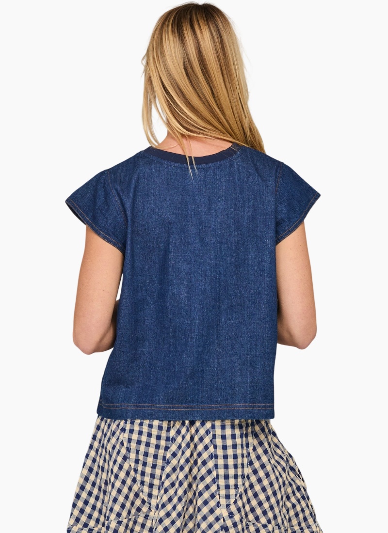 Introducing the Leaf Top from Boom Shankar. This relaxed denim piece brings effortless charm to your everyday wardrobe.