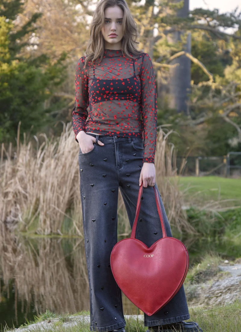 Whispered romance meets playful texture in the ‘Heart to Heart’ top, crafted from ‘Heart’s Content’ flocked mesh adorned with delicate hearts. A baby-locked neckline adds a soft, feminine finish, making this piece a sweet expression of love for your Valentine’s Day edit.• Flocked heart mesh fabric • Baby-locked neckline 95% Polyester 5% Spandex