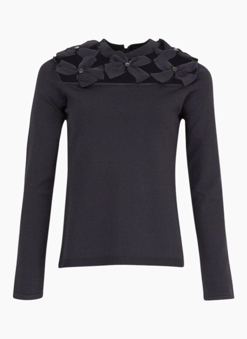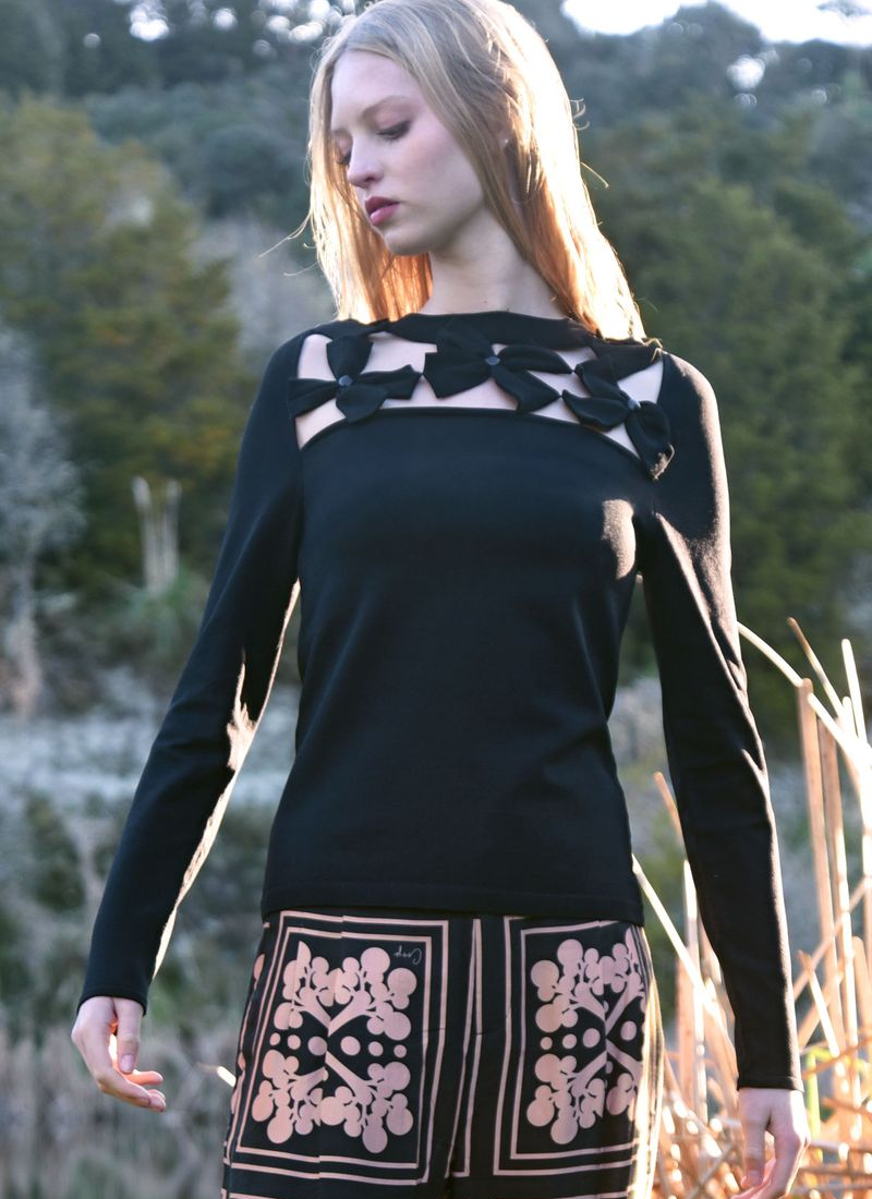 Add a fresh twist to a wardrobe staple with the Peek a Bloom top. Crafted for a close yet comfortable fit with the ‘Petal Perfect’ fabrication, it’s all about the neckline. Delicate floral cut outs add an unexpected flash of skin in the right places. Feminine and offbeat, this piece takes you from every day to elevated with zero effort• Lattice bow embllishment • Full knit fabrication 65% Rayon, 35% Nylon