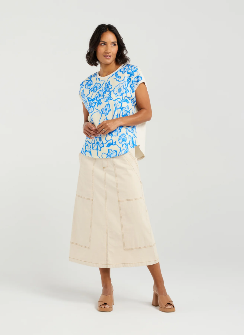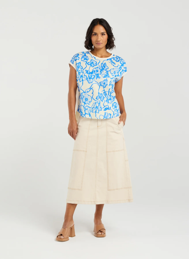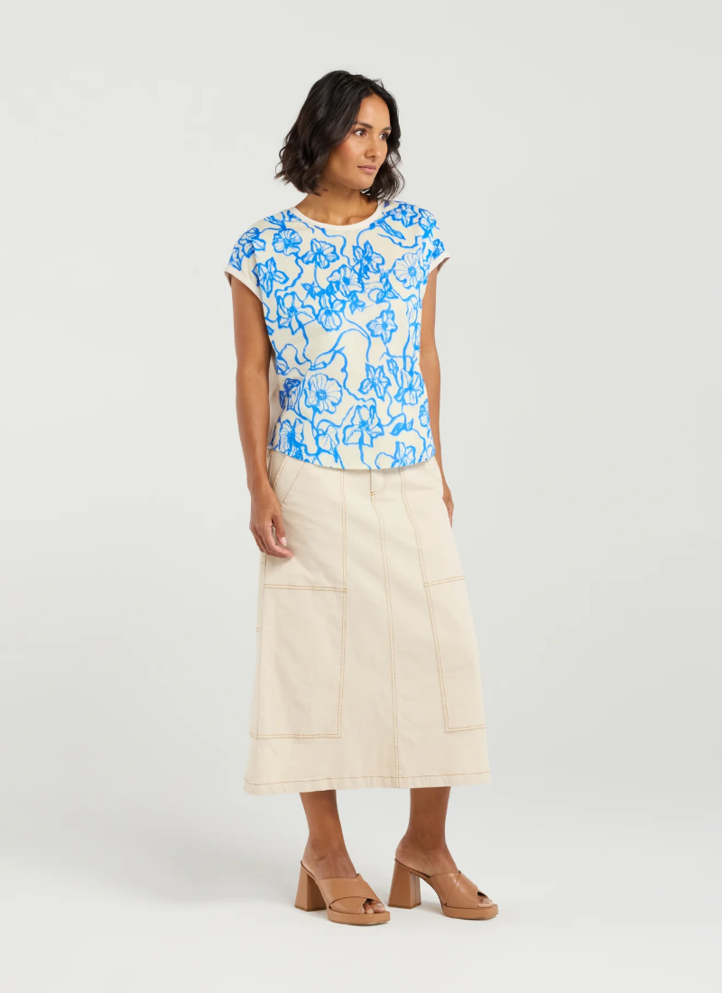 Cute and casual with a point of difference, the Tatum Top gives you the comfort and ease of a t-shirt with its Cotton Spandex back and the added luxury of the gorgeous Street Blossoms print on the front . This is perfect back with jeans or shorts for everyday summer style or with a pair of dress pants for work and occasion dressing.