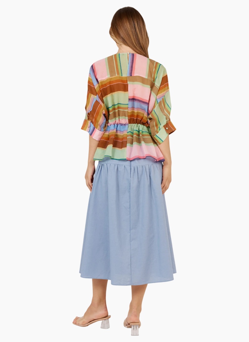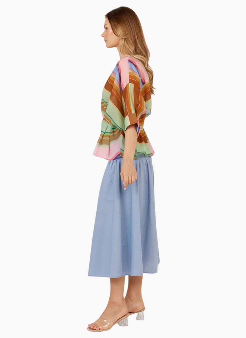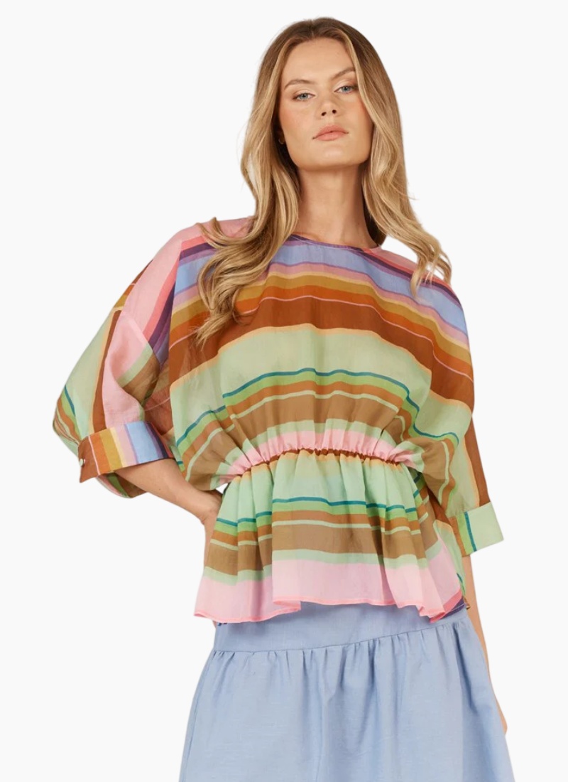 The Siesta Top is an elevated everyday style with a back neck keyhole, softly elasticated waist, and buttoned cuffs. Unlined for light comfort, it’s designed in a regular fit for effortless wear. Perfect for polished casual looks. A versatile transeasonal staple.-Back neck keyhole -Soft elastic in waist -Sleeve cuff with button -Unlined