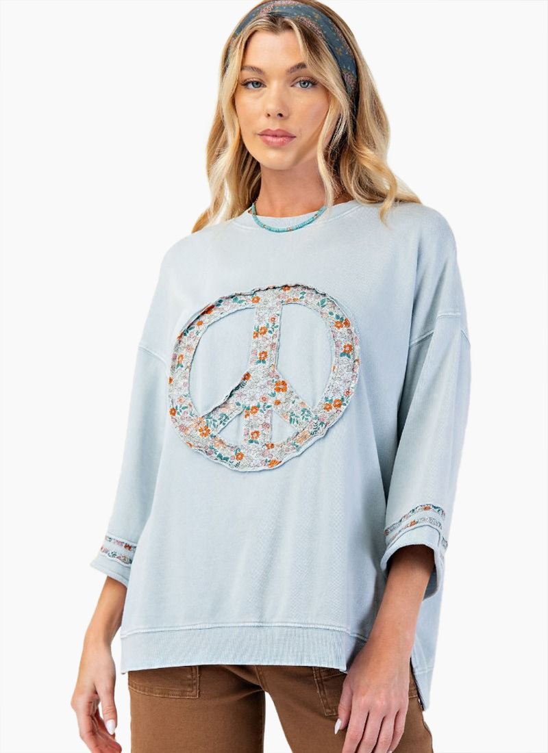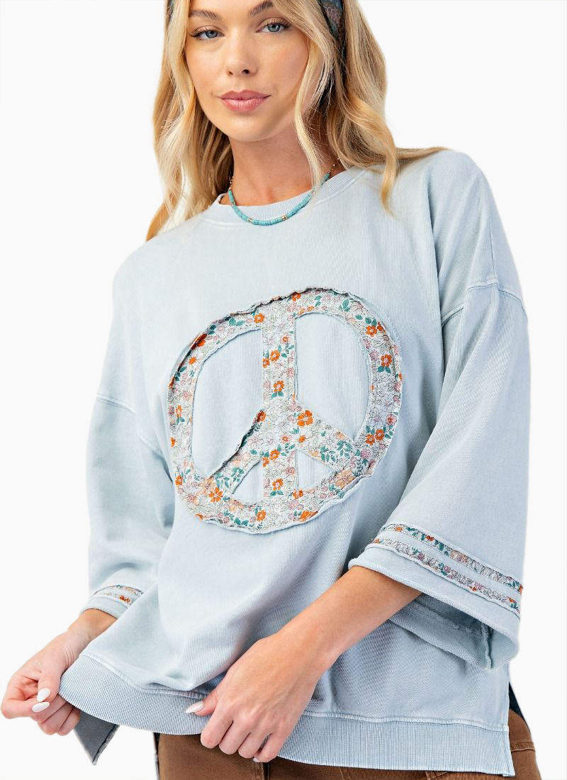 Peace patch mineral washed terry knit sweatshirt