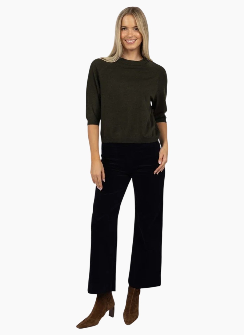 An easy everyday knit with a refined feel, the Grace Top is your go-to for effortless layering and all-day comfort. Featuring a relaxed fit with raglan sleeves and flattering ¾ length sleeves, it’s designed to drape beautifully on the body. Crafted from a soft wool-blend knit with gentle stretch, it’s light enough to layer under jackets while still cosy worn on its own. Finished with ribbed detailing at the neckline, cuffs, and hem for a polished touch. Perfect for workdays or weekends, style it with our Va Va Velour Skirt or Pant for a fun yet elevated look. Details: Relaxed fit with raglan sleeves ¾ length sleeves Soft knit with slight stretch (wool blend) Ribbed neckline, cuffs & hem Sits comfortably at the hip True to size Keep your knit looking its best with our pilling comb—perfect for maintaining a smooth, like-new finish. Fit & Measurements We hand-measure all garments to help you find your perfect fit. Size S/M M/L L/XL Chest (cm) 104 108 112 Total Length (cm) 56.5 57.5 58.5 Model wears size S/M Model measurements (cm): Height 179 | Bust 84 | Waist 60 | Hips 90 Cold hand wash recommended. Refer to care label for more details.