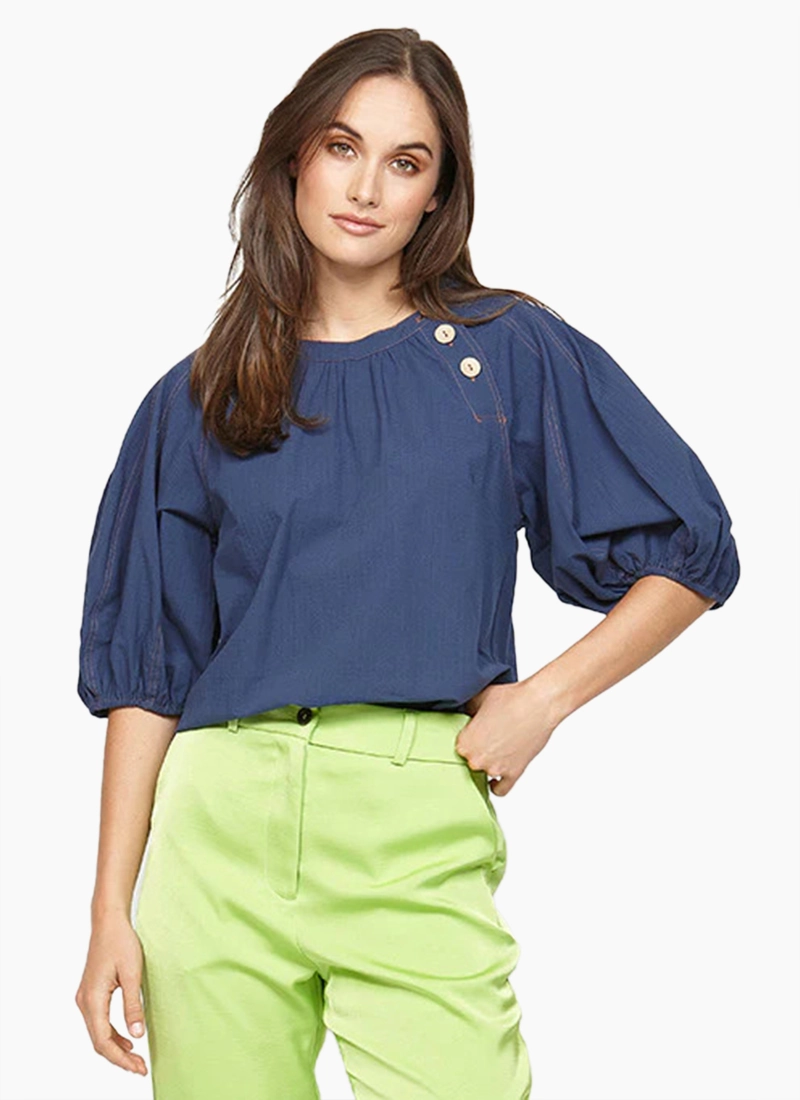 The standout feature of this top is the puff sleeves and angled button neck opening. The puff sleeves are designed with a voluminous and gathered structure, creating a feminine and playful look. Wow the crowds this season in the Mission top.