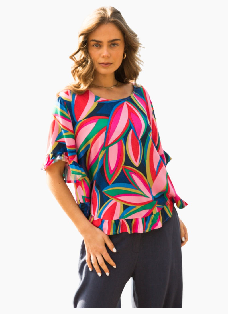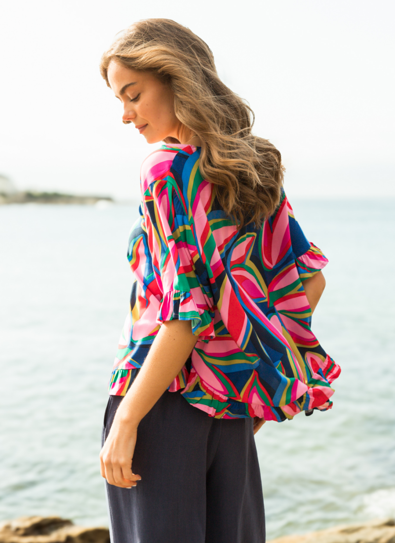 The Zinnia Navy top is simply gorgeous. The flattering draped style suits all
