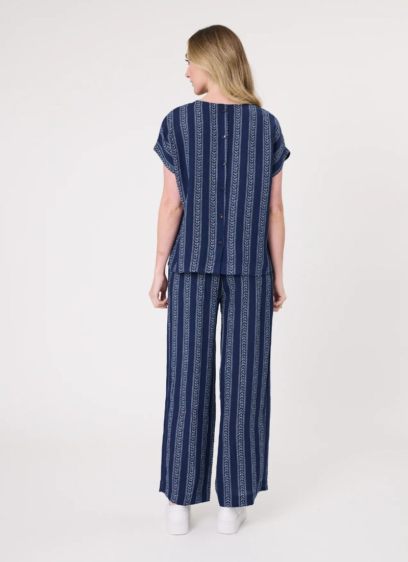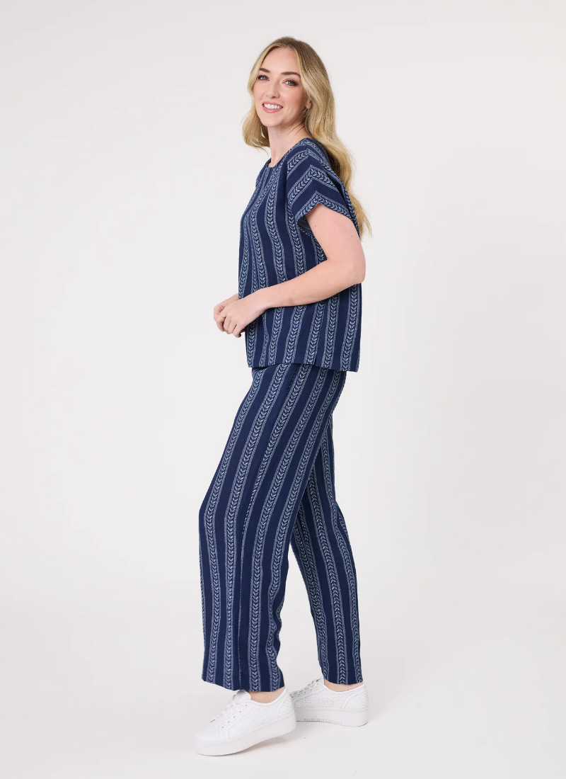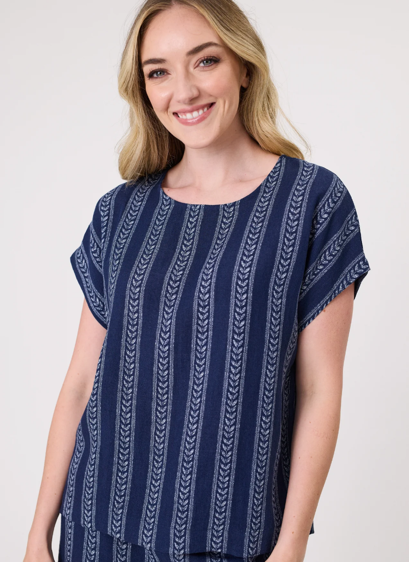 Floral striped motif available in white or navy for an easy, summery look.• Dropped shoulder sleeve design with a relaxed flowy silhouette. • Made from 100% viscose for a soft, breathable drape.