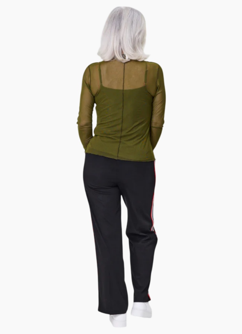 This set features a sheer mesh long-sleeve top worn over a matching viscose singlet. • Long sleeved, all seams are baby-locked and exposed for a quirky touch. • Made from a blend of Polyester, Elastane.