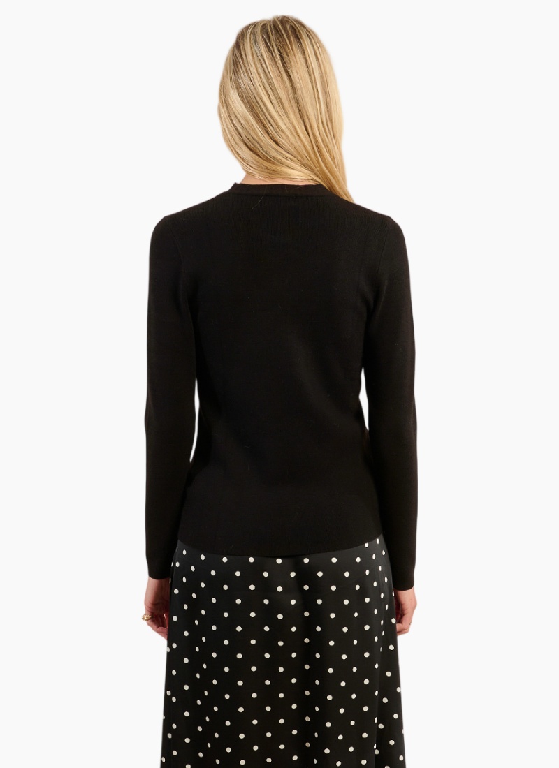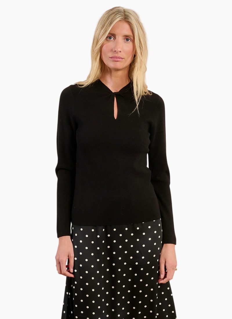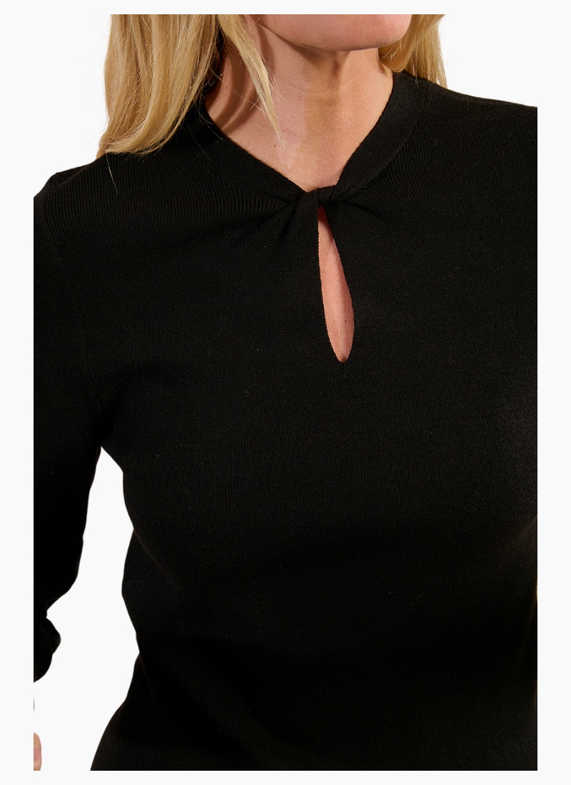 Introducing the Keyhole Long Sleeve Top from Molly Bracken. This refined black knit lifts everyday dressing with a delicate keyhole neckline for an elegant, modern look.