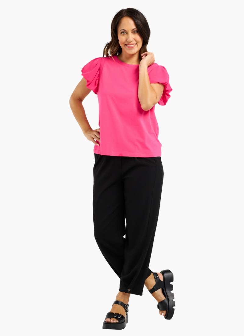 Introducing the Sophie Top from Seduce. This vibrant piece brings instant energy to your wardrobe with its statement sleeves and effortless charm.