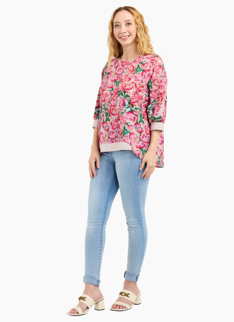 Introducing the Taylor Top from Seduce. A playful floral knit that brightens any wardrobe with its uplifting pink colour and textured finish.
