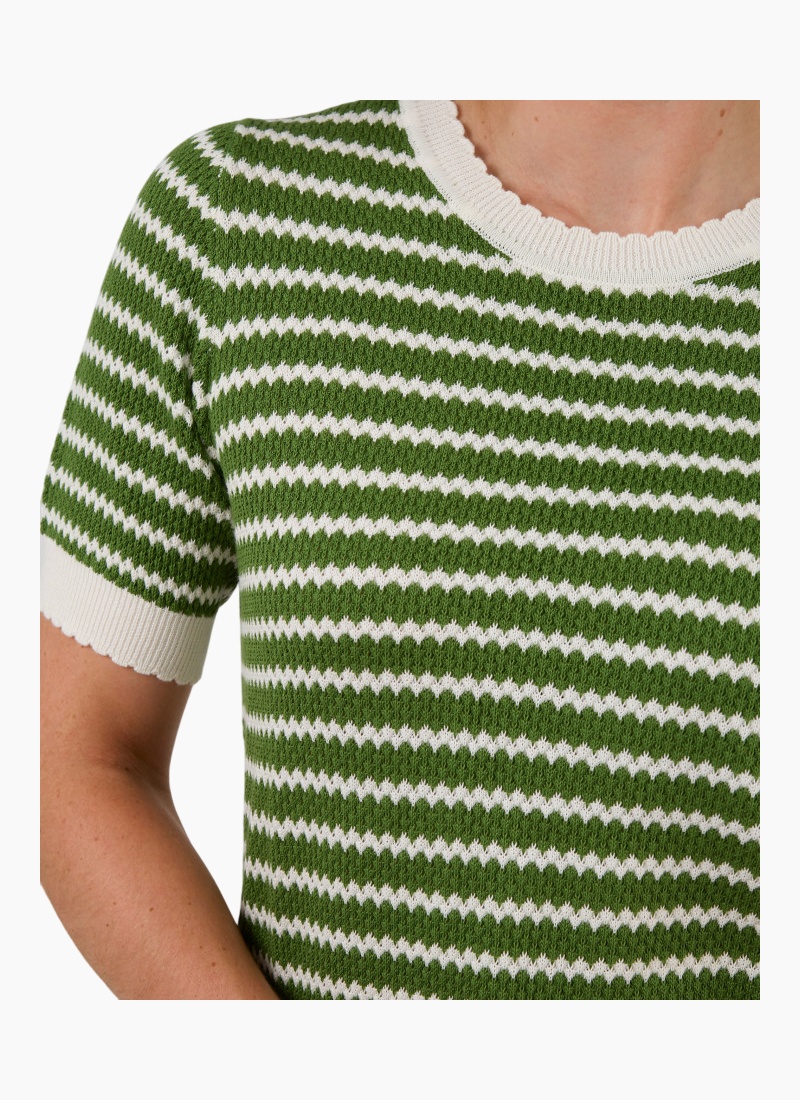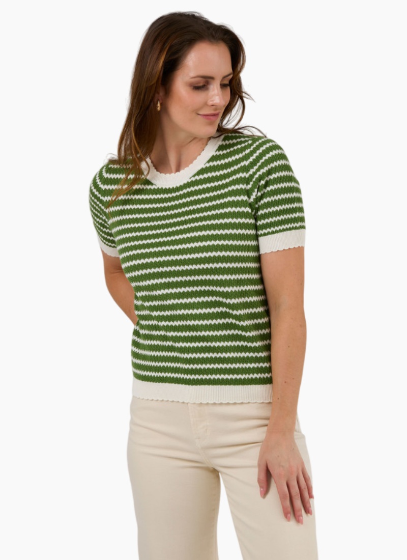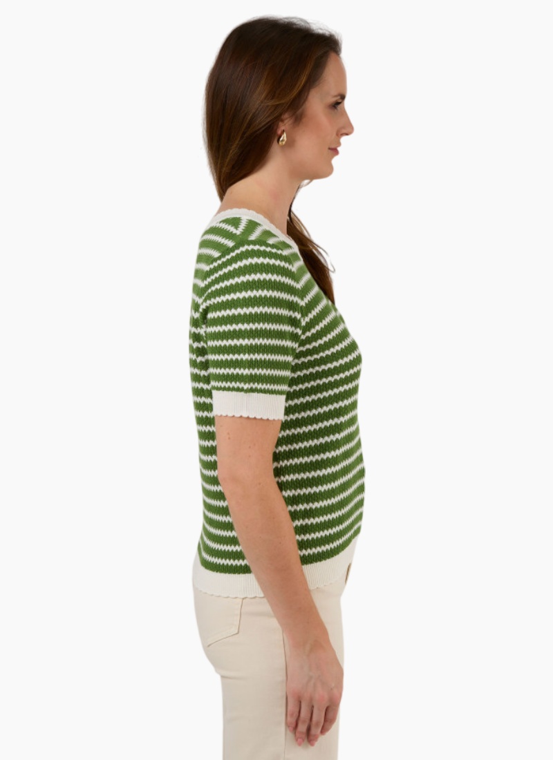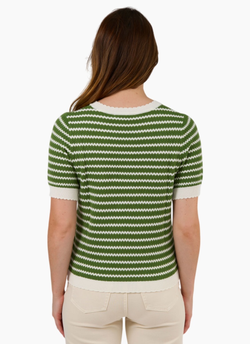 - Emerald Stripe from Stella + Gemma. This retro-inspired knit top brings fresh, crisp emerald-and-white stripes to your wardrobe with a neat, polished finish.