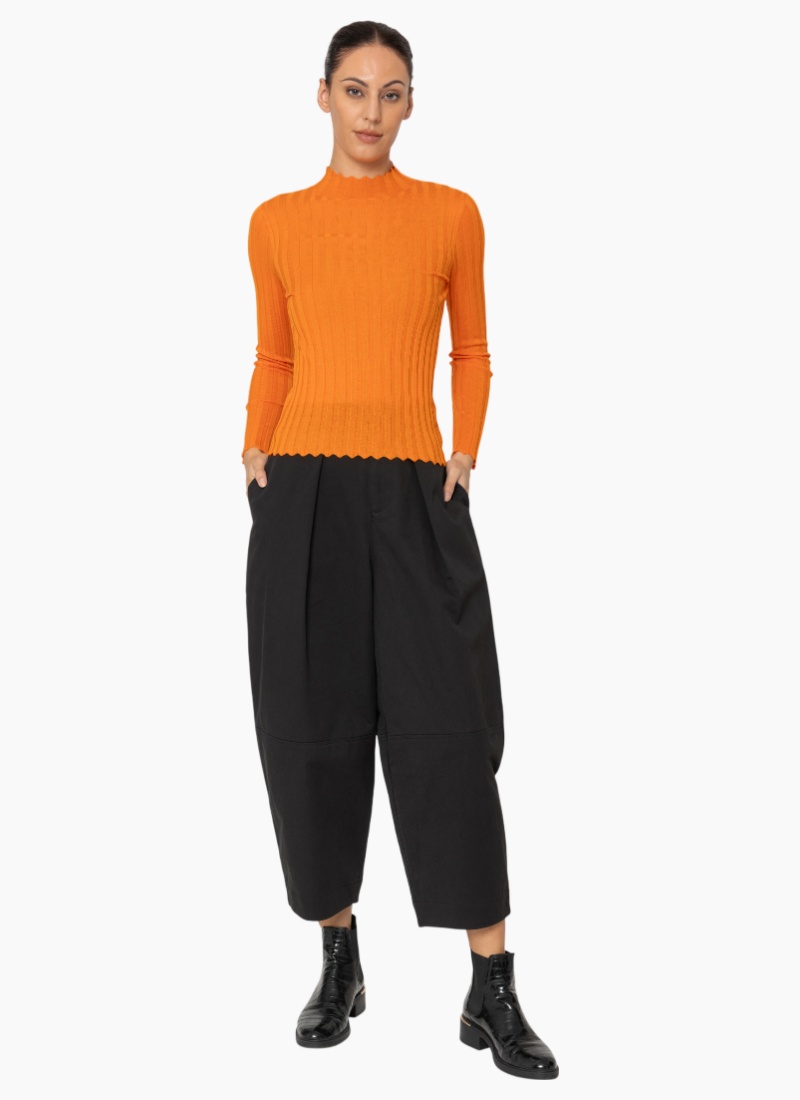- Ribbed knit construction in a bright orange colour offers gentle stretch and a flattering fit; made from a cotton blend for breathable comfort