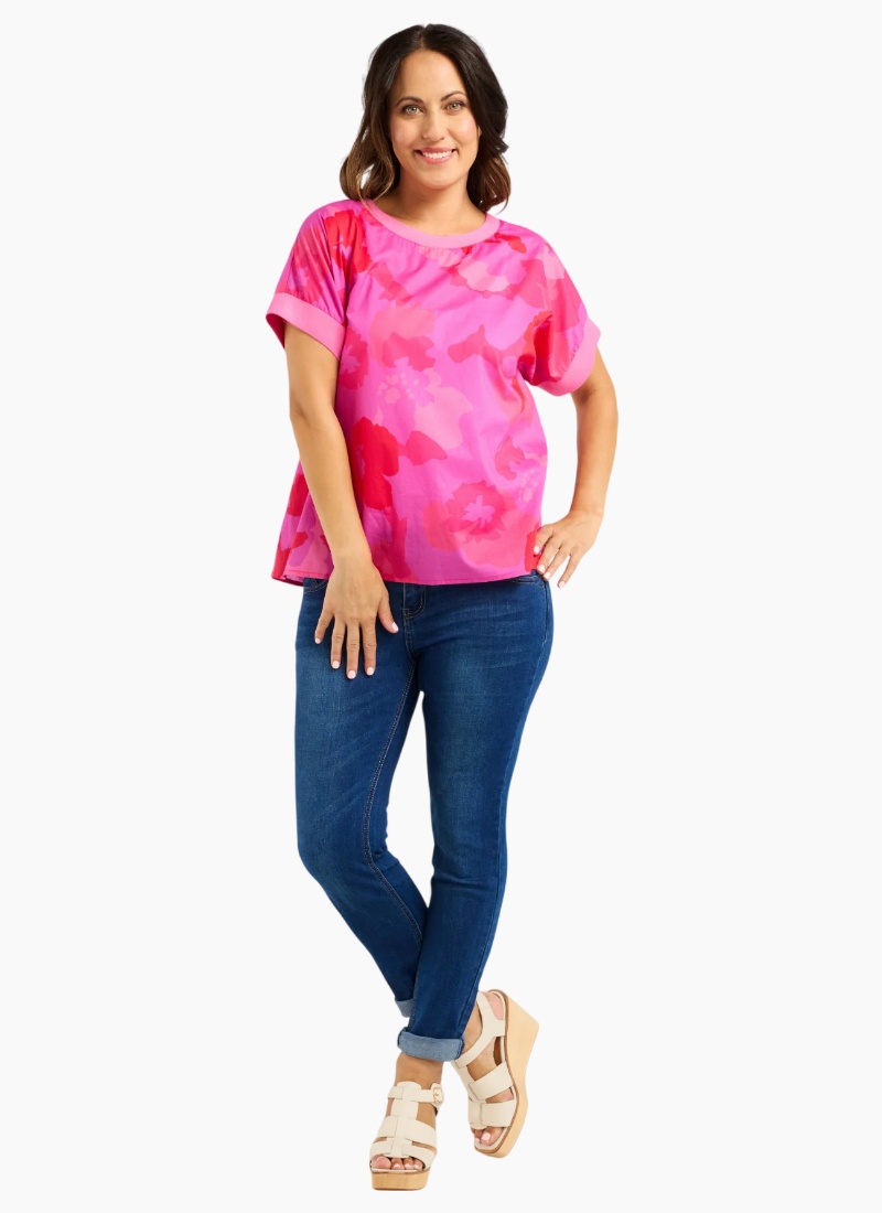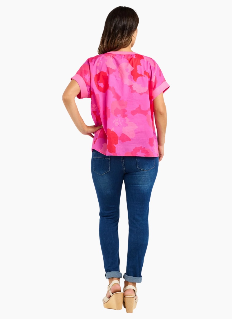 Introducing the Olivia Top — Fuchsia Burst from Zafina. A breezy, statement-making top that brightens everyday outfits.