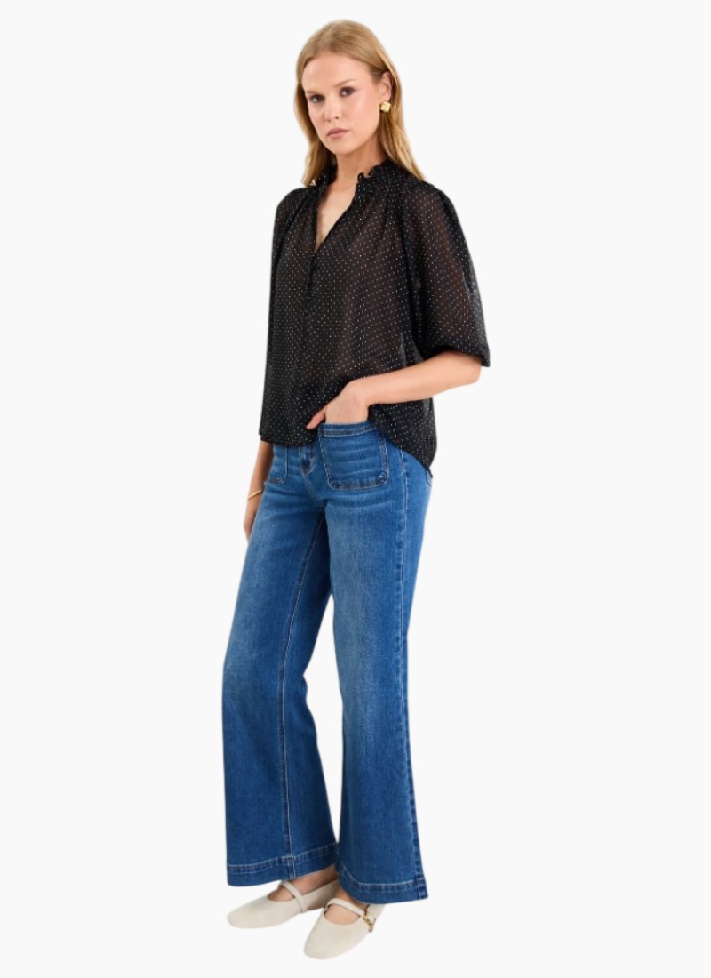 A floaty, lightweight blouse that balances elegance with ease. The Closure Top brings a soft sheer finish, subtle balloon sleeves and a mini polka dot print that feels timeless and feminine.